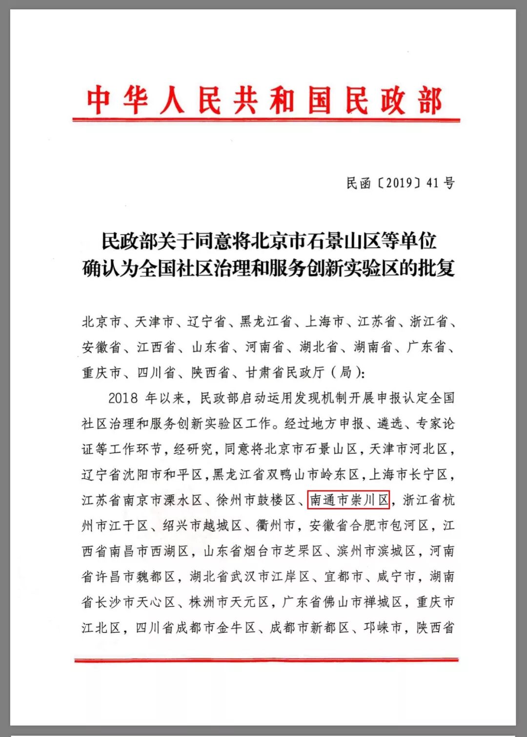崇川区被确定为全国社区治理和服务创新实验区 |