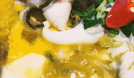 4 {/ U, m, \" E Z! }2 g滚热的金色鱼汤把炒米泡得微软,喝一口,一丝恰到好处的辣味,鱼肉的鲜美、泡菜的酸爽、炒米的焦香…各有各的戏份,让不少嘴刁老饕都忍不住动容!