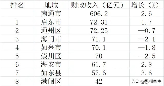 [随便港港] 南通8县区财政收入汇总:港闸最少,4地负增长,启东高于通州 |
