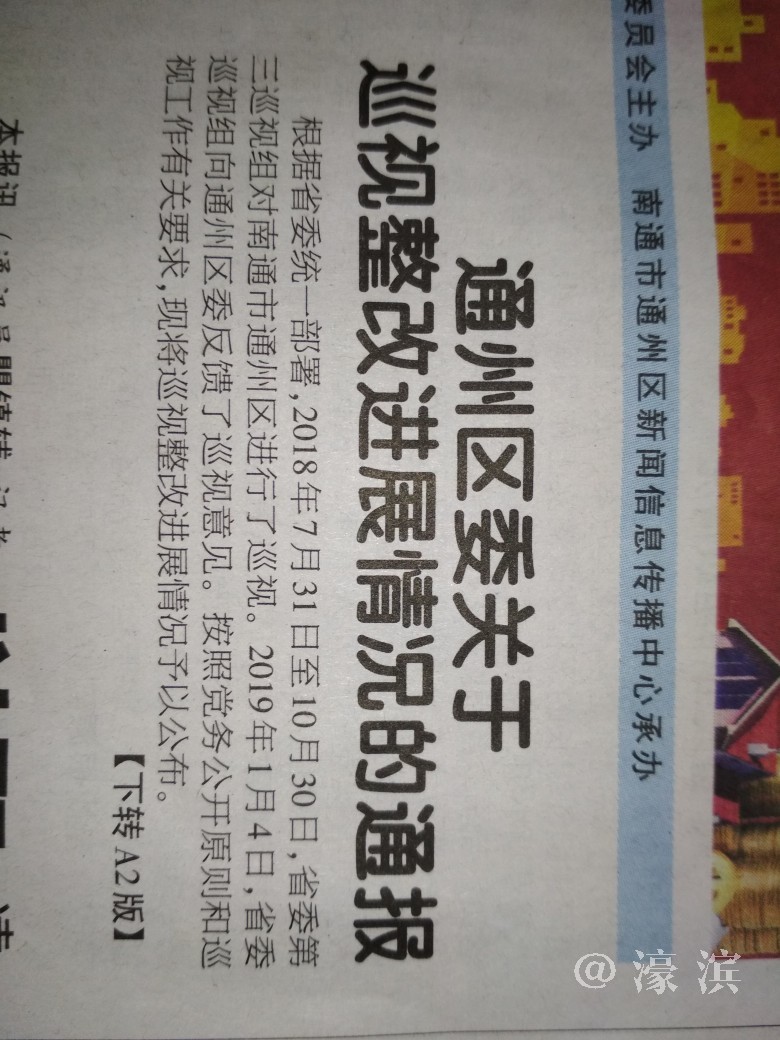 [焦点爆料] 为南通市通州区委公开《通州区委关于巡视整改进展情况的通报》点赞! |