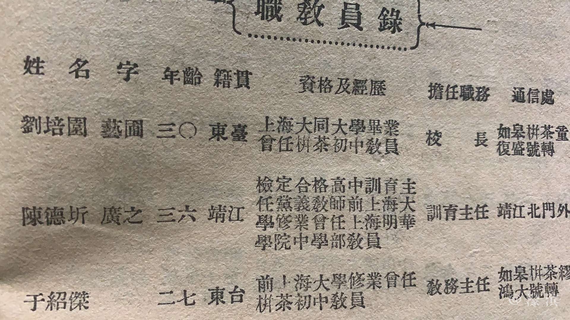 1930年东台县中学花名册上【大栟茶地区】的师生员工 |