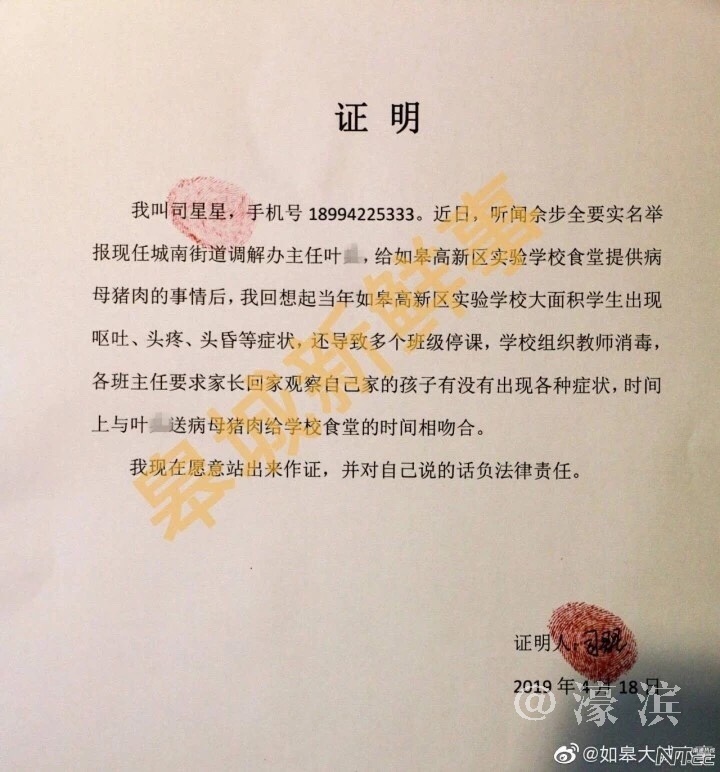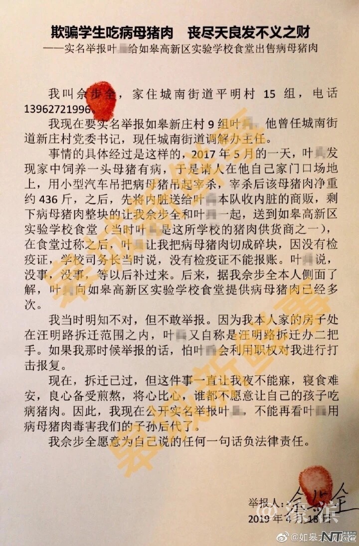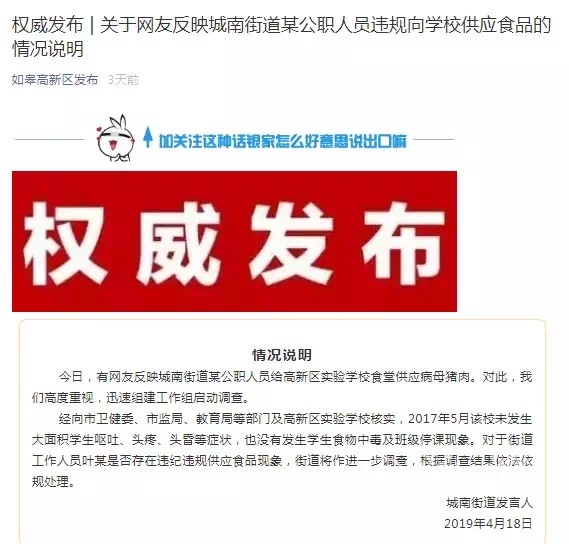 [新闻快讯] 如皋一村干部被曝给学校出售病猪肉?!官方回应来了! |