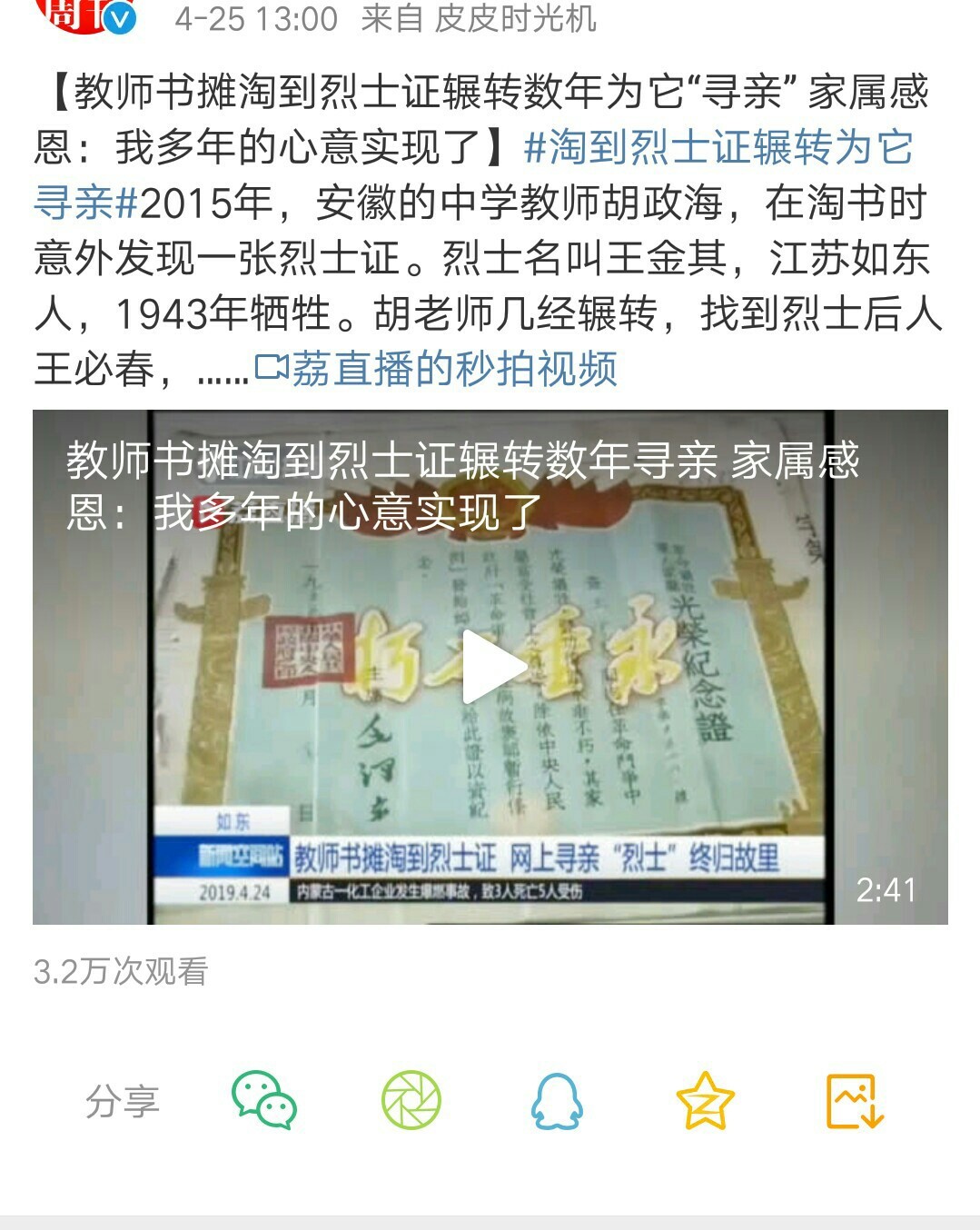 安徽教师辗转4年到如东归还烈士证,烈士家人感恩 |