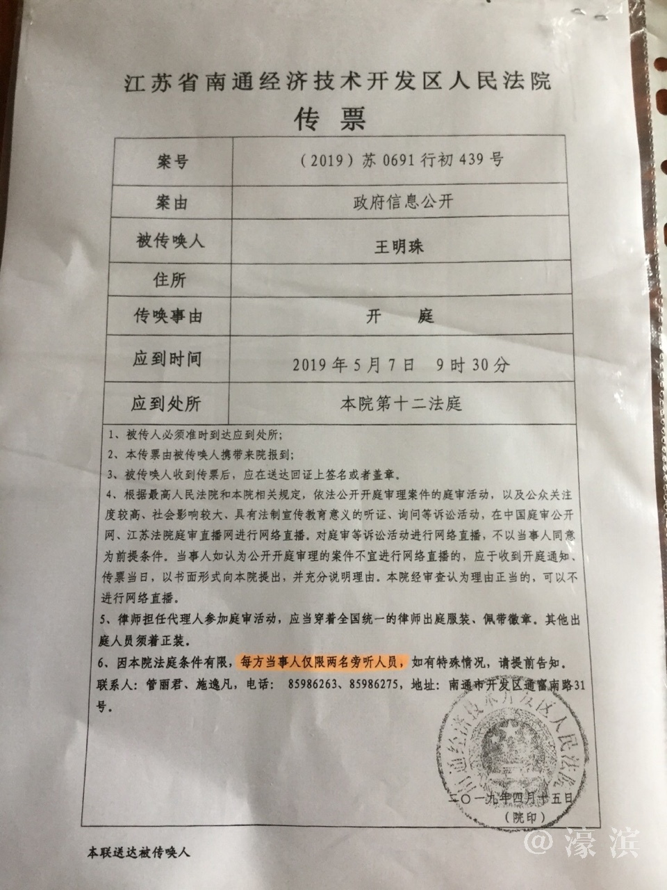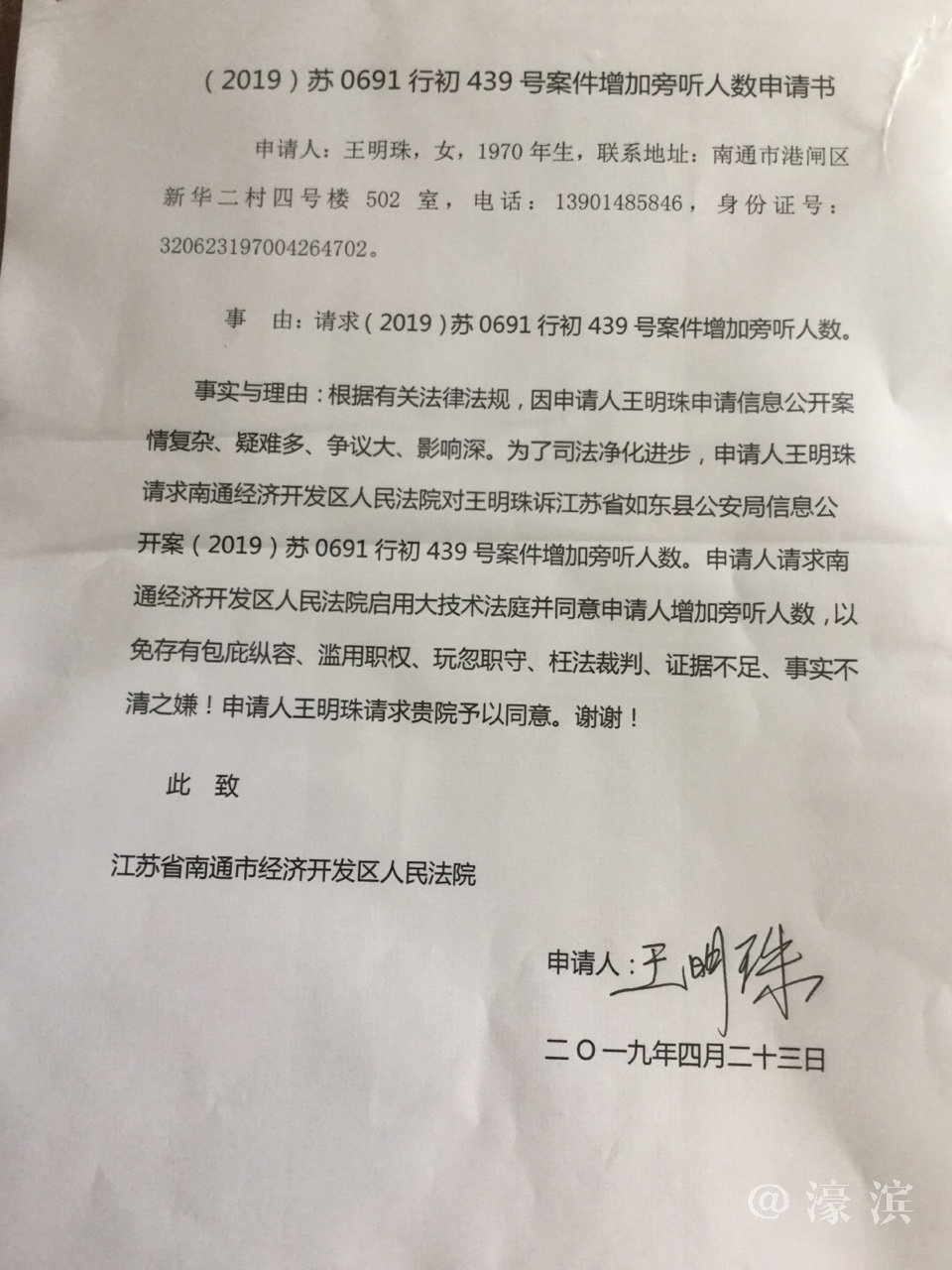 請求江苏省南通市經濟开发区人民法院同意增加旁听人数 |