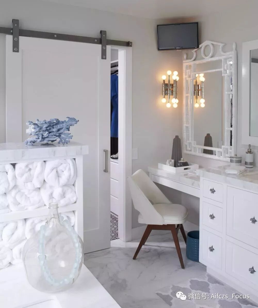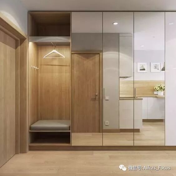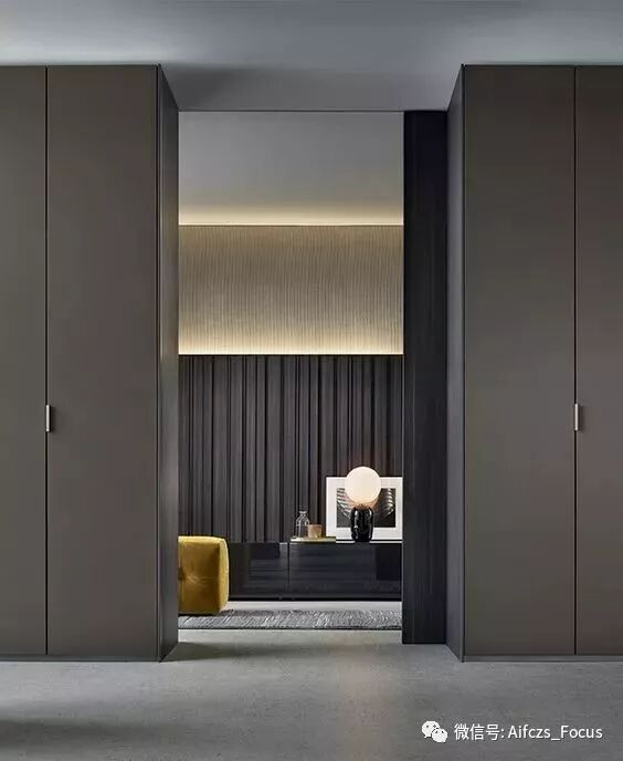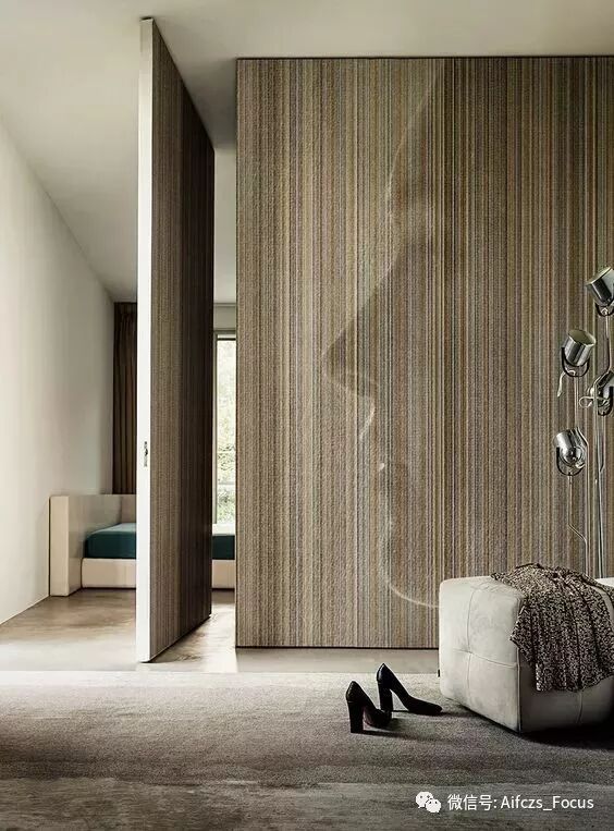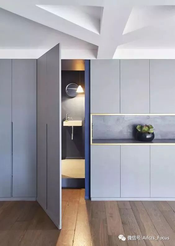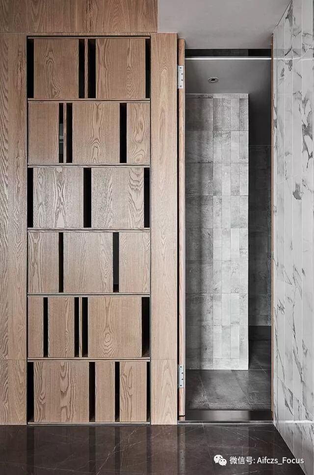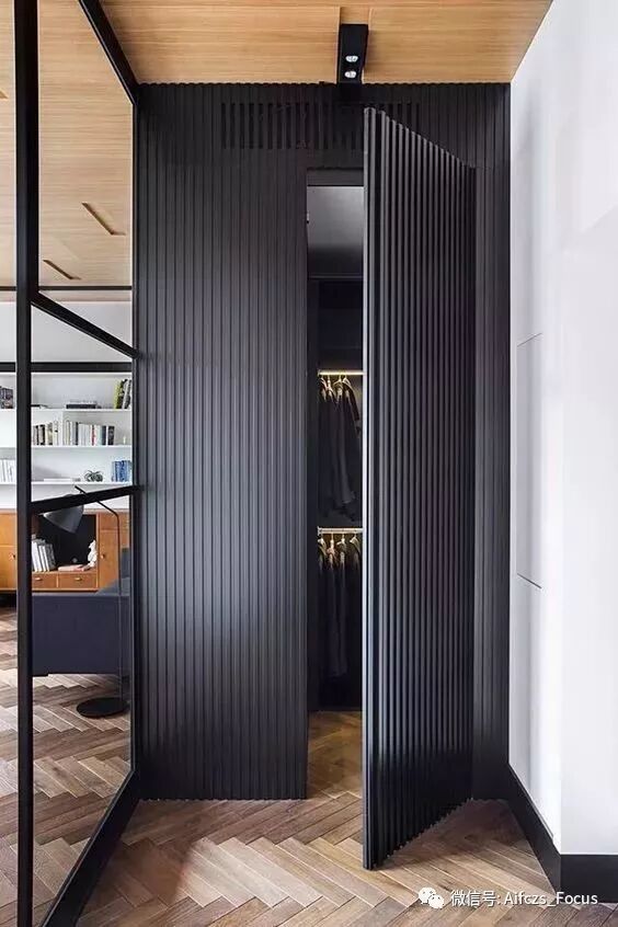 衣帽间、储物间等具有储藏功能的空间,是隐形门最常出现的地方。将它们的门和墙面融为一体,在空间视觉上,起到了很好的协调作用。