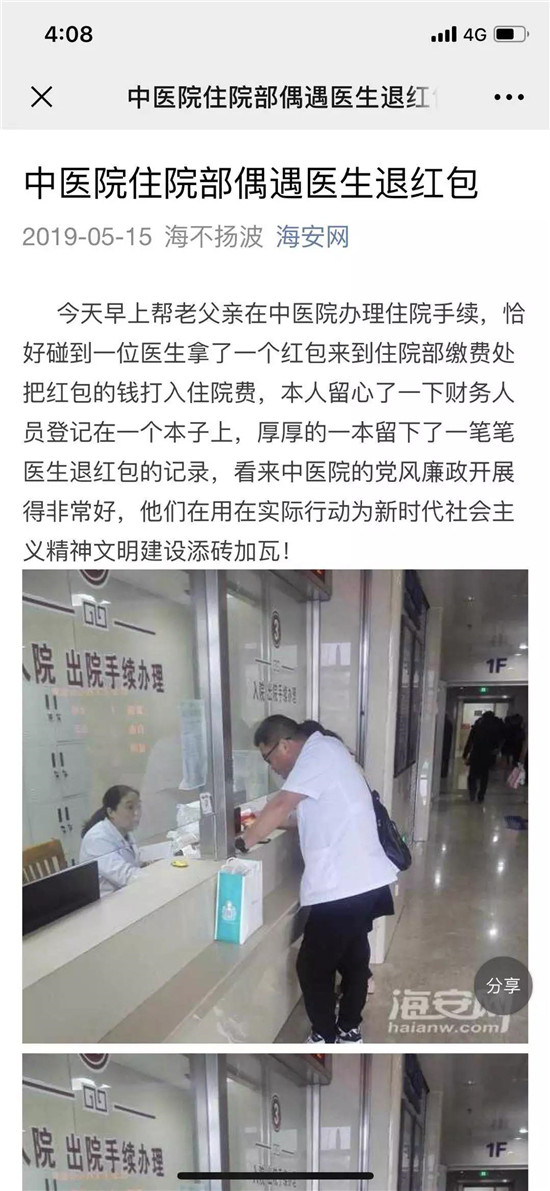 海安市中医院这个医生的一个举动,为何赢得几千人的点赞?真相竟然是...... |