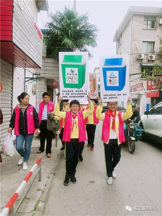 【江苏消息】垃圾分类,让城市生活更美好。连日来,海师附小组织多名志愿者,开展垃圾分类宣传教育活动,帮助孩子们养成垃圾分类好习惯,带动家庭、社会共同参与垃圾分类。 瞧,五(4)班志愿者代表正在新宁园开展了以“垃圾分类 从我做起”为主题的文明实践活动。 活动共分三个流程。首先,家长志愿者代表江妈妈向孩子们介绍了什么是垃圾分类,垃圾分类的好处,如何进行垃圾分类以及有害垃圾不分类的危害等知识。使孩子们对垃圾分类的必要性和重要性,以及操作方法有了全面的了解和认识。 接着,孩子们将自己所准备的垃圾:废纸盒、塑料瓶、塑料袋、易拉罐、玻璃瓶、布料、果皮、烂水果、树叶、过期药品、坏灯泡、废电池等进行分类,并摆放在印有不同类垃圾桶的宣传牌前。活动现场,气氛热烈最后,孩子们分成4组,将现学的知识向周围的人群宣传,孩子们通过实践,从活动中巩固垃圾分类的知识,体验分类互动的乐趣,增强了垃圾分类的宣传效果。 最后,孩子们分成4组,将现学的知识向周围的人群宣传,孩子们通过实践,从活动中巩固垃圾分类的知识,体验分类互动的乐趣,增强了垃圾分类的宣传效果。 垃圾分类宣传活动,增强了人们对垃圾分类知识的了解,让“绿色、低碳、环保”的理念深入人心,促使大家能够积极参与到实践垃圾分类的行动中来,从而不断提高自觉爱护环境卫生的意识,养成垃圾分类的好习惯。这次活动也让同学们了解到爱护环境的重要性,爱护家园,保护环境,人人有责。 只要我们从自己做起,从小事做起,大家共同努力,持之以恒,就一定能为社会,也为自己留下一片碧水蓝天,让城市生活更美好。(供稿:吴静)