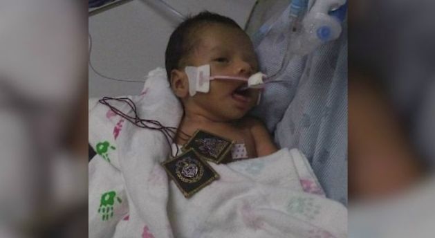 图 via FOX 照片中,爸爸约瓦尼·洛佩兹抱着他的宝宝雅迪尔。上个月雅迪尔被从母亲的子宫里强行取出,一度生命垂危。