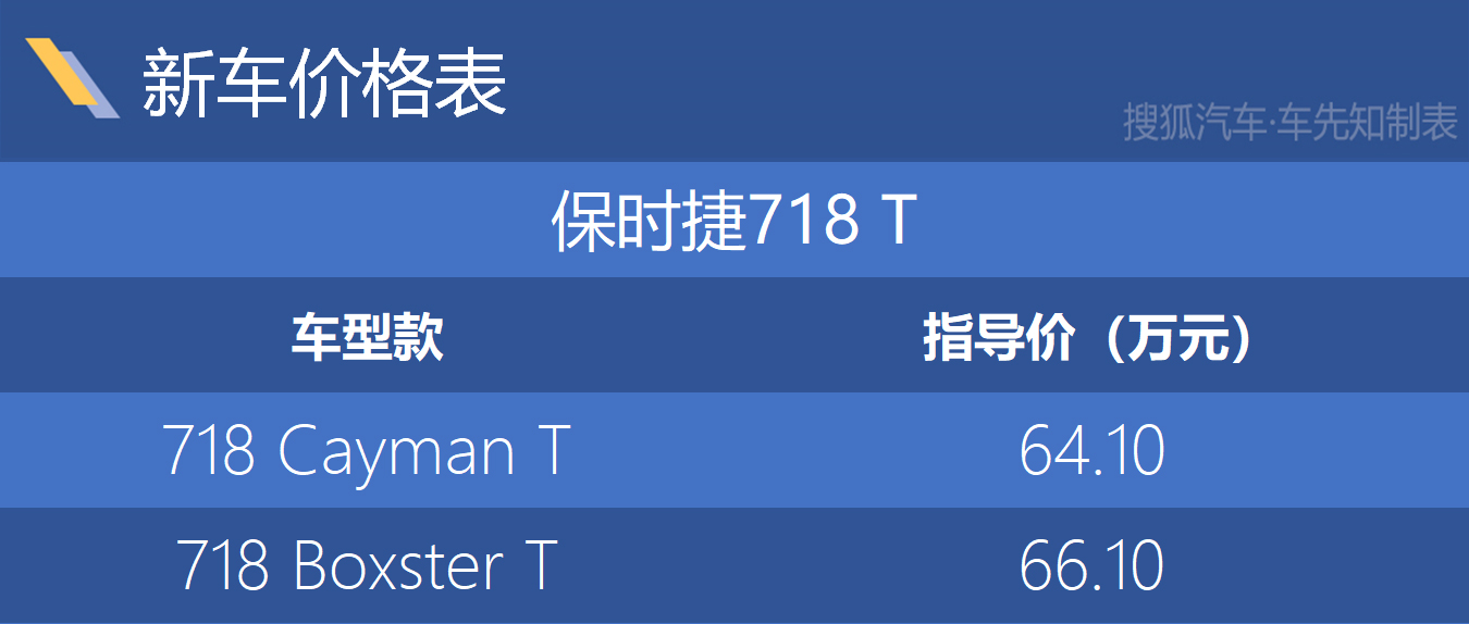 在刚刚开幕的2019深港澳车展上,保时捷正式公布了718 Cayman T和718 Boxster T两款车型的起售价,分别为64.10万元和66.10万元。作为保时捷T系列中的一员,新车将主打轻量化和驾驶感受。