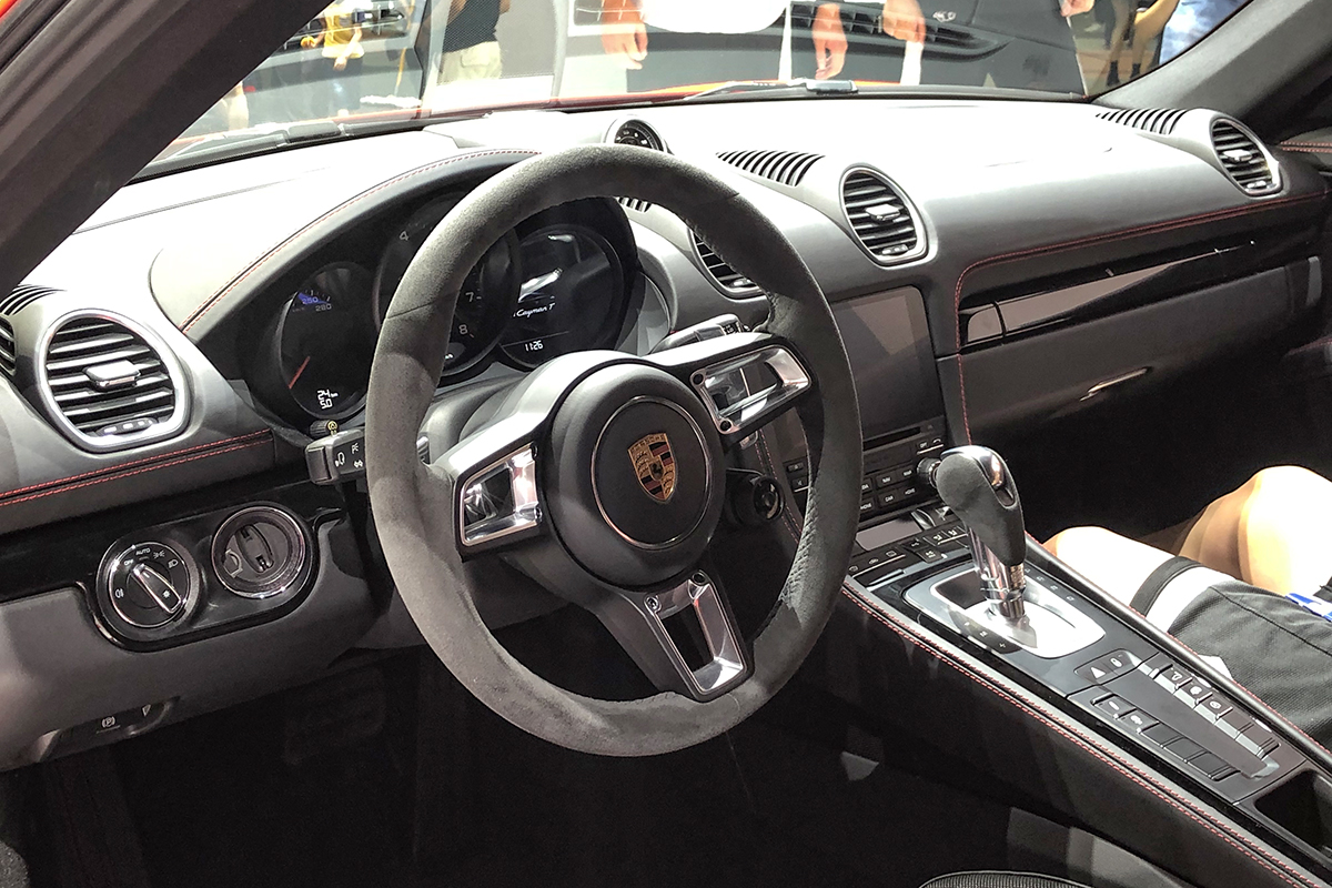 相比于外观营造的运动性,新车内饰则将轻量化和驾驶感受体现的淋漓尽致,原厂取消了中控台保时捷通讯管理系统(PCM)(也可免费选装),并将车门把手以织物形式取代,更换全新的GT运动方向盘(无媒体控制键),从而尽可能的减轻车身重量,使得驾驶员将重心回归到驾驶之上。据悉新车配备手动变速箱车型的空载质量仅为1350kg(选装PDK为1380kg)。