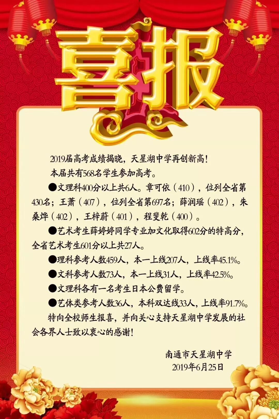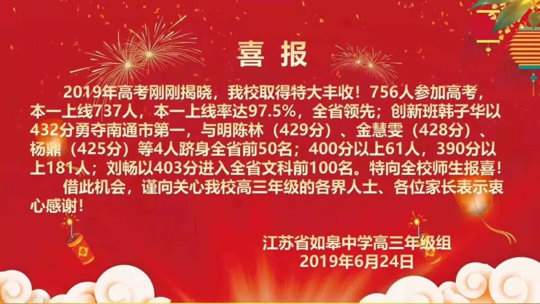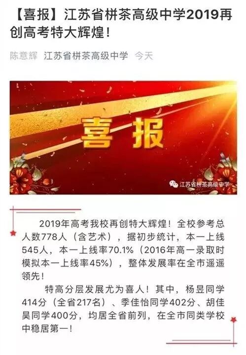 南通2019高考捷报频传 朋友圈被各中学的喜报刷屏了! |