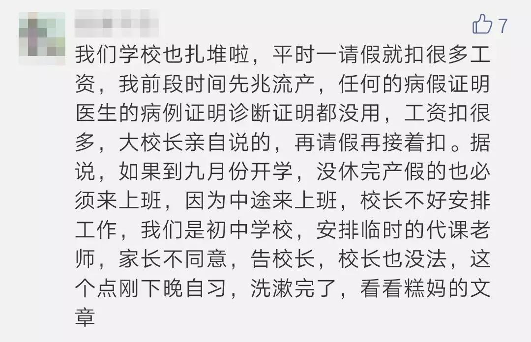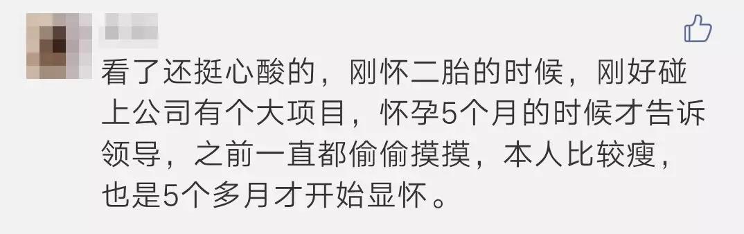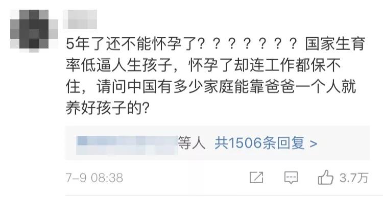 昨天微博上有个热搜: 青岛一家电子公司员工的李女士,在工作 5 年后怀孕。但事情接下来的走向却出乎她的想象—— 她被公司以“不服从岗位调动”、“旷工”、“扰乱生产秩序”的理由辞退,并被索赔13万元。 这件事在网上发酵后,大家都炸了。 底下留言中被顶到最前面的,是这样一条评论: 这条评论被点赞最高,实在是带着一种无可奈何的愤怒。 今天,我们倒想问问:女人到底工作几年才能怀孕? 1 女人工作几年才能怀孕,这本来是一个不需要问的问题。 关于生育权的法律条款明确写着:妇女可以自主决定是否生育以及何时、如何生育。 所以,为什么大家会问出“五年了还不能怀孕”这种问题呢? 因为女人在职场上,本来就很不容易,为了珍惜工作机会,我们通情达理地为企业着想。 不能刚入职就怀孕、不能因为怀孕影响工作,这些,似乎成了女性职场人该有的“自觉”。 去年有个女教师插队怀孕被辞退的新闻,我们写了文章,有个读者留言说—— 刚上班就怀孕,对公司来说是“倒霉”,对自己而言则是不负责的表现,连女人自己都是这么想的。 所以,很多单位隐藏的奇葩规定,排队怀孕也好、孕期依然要高强度工作也罢,大家都理解。 甚至怀个孕也是偷偷摸摸,觉得对不起公司: 因为职场上“效率第一”,懂事的女人们都默认了这样的交换法则:我要为公司服务多年、付出够多,才好交换一个怀孕生子的名额。 这个名额,不是说要怎享受样的特殊照顾,只是希冀在孕期、哺乳期能够不被变相离职、不被不公平地调岗、享有该有的法定产假和哺乳假。 这真的只是女人想要的一个基本体面。 所以,看到热搜上这个妈妈为一家公司工作5年后怀孕,大家才会愤怒地问: 5年了还不能怀孕吗? 5年了,不够“对得起”这个公司吗? 现实的结局,实在没有一点温情。 李女士被解雇的时候,收到的是一张冷冰冰的通知单,让人看了很心寒。 2 所以,女人到底工作几年才能怀孕? 答案也许是:几年都不够,付出再多也不够。 当你怀孕的那一刻,似乎就被视为拖累、包袱。 澎湃新闻昨天还报道了另一个因为怀孕被辞退的刘女士。 2015年,刘女士入职一家刚成立不到半年的创业公司,从新媒体运营开始,一路做到市场总监。 她经常加班到晚上九、十点,甚至凌晨。一到新产品上线之际,几乎每天工作到凌晨四五点。 两年多后,刘女士发现自己怀孕,便将消息告知公司领导,但事情也渐渐发展得令人不安——公司马上挂出了她这个岗位的招聘需求、不让她经手新任务,在她因为先兆流产请病假休息的时候,她的位置已经完全被替代。 左右滑动查看更多 从流出的微信截图来看,刘女士最开始告诉领导自己怀孕的时候,根本没想到事情会走到这一步。 再早一点,还有京东女高管怀孕后向刘强东“请示”的视频。 央视《遇见大咖》节目组拍摄到一次聚餐,饭桌上,刘强东边上坐着当时的京东集团副总裁杜爽,因为被劝酒,她不得不坦白自己怀孕了。 杜爽小心翼翼地和刘强东说:“我这个意外怀孕四个多月了。” 刘强东马上做了回应:“哦,那你别喝了。” 杜爽紧接着就开始解释:“他们也都不知道呢,因为之前高危,医生说高危,不一定能留下来。所以也就没跟大家说。” 刘强东接着问:“那你怎么休息啊。” 杜爽回答:“没休息。” 刘强东:“为什么不休息啊,应该休息保胎。” 杜爽:“就这样,反正也过来了。现在已经稳定了。” 一边是经历了孕早期高危的杜爽诚惶诚恐地保证“不会耽误工作”、“大家都没看出来”,一边是刘强东说的“你就休息吧”、“也该把机会让给兄弟们了”。 ▲上下滑动查看 看到这些的时候,我们很难不去问: 女人怀孕,到底对不起谁了呢? 3 女人不生孩子,对不起的人很多——政策放宽了,国家支持了,社会劝你生、婆婆劝你生、老公劝你生。 女人生孩子,对不起的人似乎也很多——企业不容易,凭什么让同事替你分担? 而这,还只是一个开始。 孩子出来之后呢?不停有声音告诉你,孩子是我们的未来,是属于全社会全人类的,而为生育和养育孩子所付出的成本:时间、精力、错过的工作机会和职场上升通道,只有女人自己买单。 日剧《坡道上的家》里,在法院工作的松下朝子被上司指责:你休完产假回来,以接孩子为理由提前下班多少次了?不能拿孩子当借口,在工作上的任务,男女都一样。 这话是在说,生养孩子并不是女人的武器,职场上没有性别特权。 而当她申请新工作岗位时,又立刻有同事来找她确认:这个岗位可能需要调去外地,你不用跟你先生商量一下吗? 这让她忍不住问:如果我是男的,你还会问我这问题吗? 你看,这个时候大家又默认,女人确实还应该以家庭为重。 再懂事、再通情达理、再能付出和忍耐的女人,也无法在这样的撕扯里得到平衡。 所以,女人到底工作几年能生孩子,谁给我们答案呢?