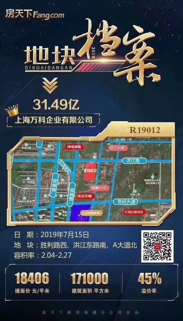 [随便港港] R19012地块(中创一小北边)被上海万科企业有限公司以约41781元/㎡竞得 |