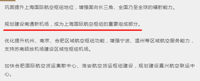 图片来源:上证报报道网页截图 虽然苏州可能觉得有点“委屈”,但在这一背景下,这座新机场选址于此,也就不难理解了。 落子南通 这两年,关于上海第三机场的话题,时不时就会掀起一番讨论。这背后,是上海两个机场将提前达到饱和状态的现实。 2018年,上海浦东和虹桥两大机场共完成旅客吞吐量1.18亿人次,货邮吞吐量417万吨。按照上海城市总体规划,2035年机场旅客和货邮吞吐量预期分别为1.8亿人次、650万吨。而按照当前情况,预计到时上海两大机场旅客吞吐量将达到2.3亿人次。此前,有专家建议,上海应当在现有基础上再增加1.5个虹桥机场和1个大型通用机场。 为此,周边众多兄弟城市展开争夺,其中尤以南通和苏州最为积极。 今年2月,“上海第三机场选址江苏南通海门”的消息登上各大媒体头条。不过,很快,民航局方面就表示:“民航局没有受理过上海第三机场选址的申请。在全国民用运输机场布局规划中,也没有上海第三机场。” 不过,从各方信息来看,南通新机场早就有迹可循。 今年1月,江苏省政府工作报告就提出,“要推动南通新机场规划建设”。紧随其后,当月底,中国民航工程咨询公司在南通召开南通新机场选址报告评审咨询会,上海市发改委、交通委、上海机场集团等部门就与江苏省市相关部门一道,参加了会议。 更为确切的消息是,今年5月21日,在南通举办的2019第二届通商大会上,徐惠民公开谈到,具备上海枢纽机场功能的南通新机场正在抓紧规划,将通过北沿江高铁和沿海通道连接上海。 在7月12日的直播节目中,徐惠民进一步表示,北沿江高铁“将从成都、重庆、武汉、合肥、南京经过南通,穿过崇明岛连接上海,使南通真正成为沿江的龙头型城市”。 据上证报此前消息,南通新机场基本确定选址于海门四甲及周围乡镇,规划面积20平方公里,一年吞吐量设计为5000万人次。 这是什么概念?目前,我国机场旅客吞吐量达到这一规模的仅有北京首都、上海浦东、广州白云及成都双流四座。而南通已有的兴东机场,2018年旅客吞吐量仅为277.13万人。这样的建设能级,显然将面向更大格局。 带动北翼 为什么是南通? 从地理位置来看,南通与上海隔江相望,交通并不算便利,乘坐大巴要花费2.5小时。也因此,早在2009年民航局下发的《研究南通兴东机场建设发展问题》中,就已将南通机场定位为上海国际航空枢纽的辅助机场,但多年下来效果并不明显。 现在,这个新机场将依靠正在建设的北沿江高铁、沪通城际铁路等轨道交通,拉近与上海的距离。开通后,南通将融入上海半小时都市圈。