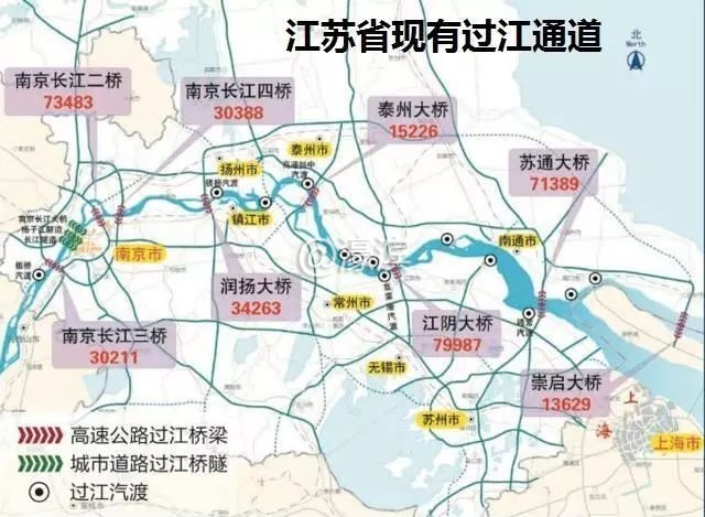 从江苏省现有的过江通道和未来的过江通道中,不难看出。大部分过江通道,集中在南京周围,对解决过江拥挤问题仍有不足。