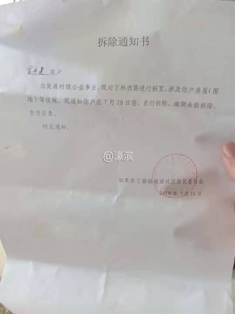 [百姓民声] 南通市领导:如皋市丁堰镇堰南社区居民委员会的拆迁通知书合法吗 |