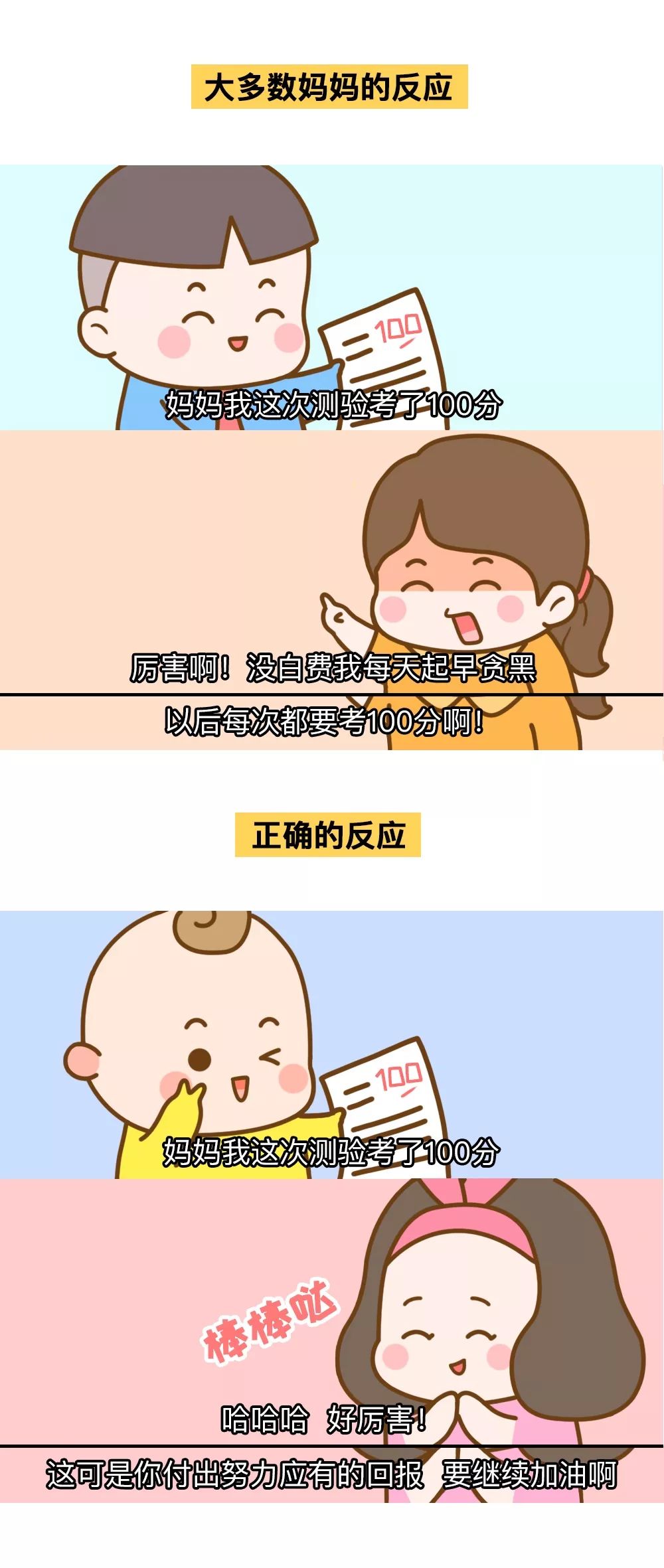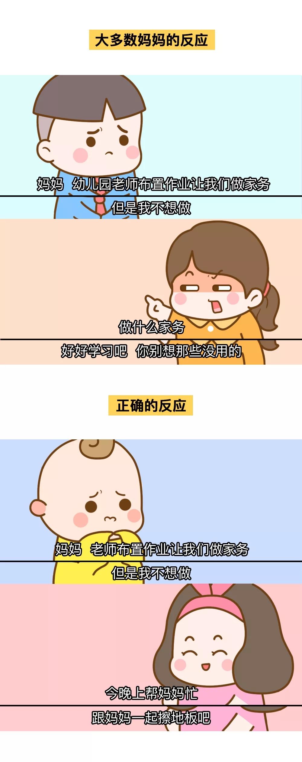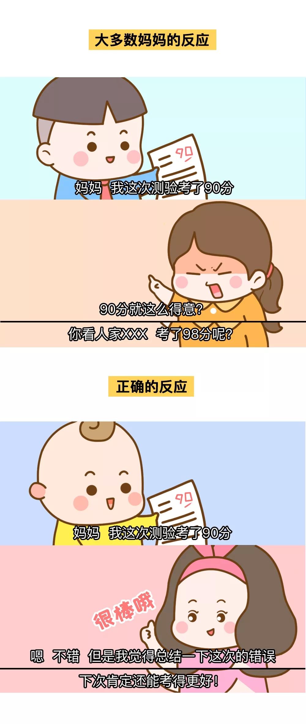 每个孩子 都像是一张白纸 他们长大成人 就像是我们在这张纸上 一笔一画的书写一篇文章 有的孩子长大以后 变成了一篇美文 但是有的孩子就一言难尽…… 你有没有想过 其实随口说的一句话 随手对孩子做的一件事 都会影响他的一生呢? 1 当孩子被欺负了… 一种是对孩子的质疑和否认,另一种是对孩子的理解和信任。 李玫瑾教授参加中央电视台《开讲啦》节目时,有观众提问说: “如果你的孩子跟你说‘我同学欺负我,他们打我’; 你会不会跟他说‘打回去孩子,我支持你’呢?” 李教授坚定的回答:“打回去,我支持!” 李教授说:“我们现在所接受的教育,更多的是遇到问题先让孩子自我反省, 这反而纵容了一些不良行为……” 我们做父母的都不信任他,他怎么会有安全感呢? 2 当你不理解孩子的奇思妙想 见过有的家长说,自己家的孩子从来没有表现出什么天赋…… 真的是这样的吗? 有时候孩子想象的世界跟现实的世界不一定吻合,这就是他们跟大人的区别。 很多时候他们的创造力、想象力就是这样被我们忽视了。 3 当孩子开始抵触你的要求…… 为什么有的孩子小小年纪就开始叛逆、不听话? 孩子始终是孩子,需要软硬并施,而不是一味的“恐吓式命令”。 很多家长反映,自己就是第一种妈妈,慢慢的,他们的孩子脾气变大、甚至打也不听话。 而第二种方式,孩子更容易接受,慢慢的也更容易改变他们的不良行为。 4 当孩子在公共场合调皮、吵闹 让你很恼火、很没面子…… 有人说,想让孩子成为什么样的人,首先你得是这样的人。 如果说你一直都是很暴躁的对待孩子,那么你又凭什么指望他成为一个安静、有礼貌的人呢? 5 当孩子向你提出无理的请求 在当今成人的世界里,情商、教养被看得越来越重要。 而这些内在的素质,是从小潜移默化形成的。 人人都说,熊孩子背后都有熊家长。 我相信高情商、高素养的家长一定教不出熊孩子。 6 当孩子跟你抱怨、宣泄情绪 常听到家长抱怨,孩子小时候什么都喜欢跟我说,长大了什么都不跟我说了…… 那么在孩子小的时候,他有情绪需要倾诉的时候,你有没有重视呢? 现在的孩子都是小大人,也需要爸爸妈妈的倾听。 7 当孩子总是企图通过哭闹来让你妥协 从小就要让孩子明白,哭可以,发泄情绪可以。 但是不要企图通过哭来换取玩具! 8 当你对孩子某方面的表现不太满意 如何教育她/他? 曾经看过一个调查,孩子最不愿意听到一句话就是,“你看别人家的孩子……” 这样打击式的“鼓励”,对于孩子来说,除了打击他的积极性和自信心,起不到任何正面的影响。 反过来想,如果一个孩子门门100分,却不够阳光、自信,这算是成功的教育吗? 9 当你对孩子的表现很满意 如何鼓励他/她? 两种鼓励方式,第一种鼓励的是结果,第二种是对孩子自身的认可。 同样是鼓励,孩子的感受却是完全不一样的。 对孩子自身进行肯定,孩子才能一直从鼓励中获得动力,才能更加自信。 10 当忍不住对孩子发脾气… 在带孩子的过程中,难免会有情绪失控的时候。 而孩子也是时时刻刻会让我们心烦意乱,我们一定要慢慢学会控制自己的脾气。 否则事后自己内疚,也伤害了孩子。 11 家有二胎 当其中一个被忽略、冷落 二胎家庭,最不该忽略的孩子其实是老大。 但是常常被忽略的也是老大。 生二胎的目的就是让孩子们在更有爱的环境里成长,千万不要本末倒置。 12 当孩子不想做家务 有的家长总觉得孩子还小,不需要、不舍得他们动手干活,孩子的任务不是学习吗? 可是做家务不仅能锻炼孩子的意志和动手能力,他们也能在这个过程中更有责任感。 当今这个社会,不管是男孩还是女孩,有家庭责任感的孩子注定越来越受欢迎。 13 当孩子需要花钱、投资 有的父母总喜欢跟孩子哭穷,这会让孩子缺乏幸福感。 反而会一直内疚,觉得自己是父母的累赘。 这会让一个孩子不自信、没主见,不敢成为焦点。 养育孩子花钱是难免的,既然要给孩子花钱,何必还要让他内疚呢? 14 当孩子开始攀比 孩子有攀比心、虚荣心是正常的,大人尚且如此,更何况是孩子呢? 都说教育孩子一定要跟他谈钱,让孩子早早地明白,我们家买的起什么,买不起什么,并不是一件坏事。 真正自信的孩子不会因为买不起而受伤,也不会因为买得起而满足。 15 当孩子开始攀比 有研究表明,父母激烈的争吵会让孩子脆弱、厌世、自卑,甚至将父母争吵归咎到自己身上,从来变成讨好型人格。 大人吵架是难免的,但是要就事论事,不要当着孩子的面恶语相向。 正面回应、并且及时安抚孩子,更不要逃避孩子的问题,比如冷战。 写在最后: 看完这些,我相信很多妈妈的感受都是一样的: 我和孩子说话的方式是不是有问题? 作为家长,我们最在意的是孩子,最容易忽略的也是我们的孩子。 孩子,我们生,我们养,如何教育孩子还不是我们自己说了算? 有时候我们很难意识到,自己说话的语气、用词、情绪会让人觉得不舒服。 教育孩子因人而异,但也正是因此,有的孩子优秀,有的平庸,有的孩子招人喜欢,有的孩子不招人待见。 曾经看过一句话,叫做: 孩子对父母也是有要求的,一句话也能影响他的一生。 就像开头所说的,孩子就是一张白纸。 教育孩子不是一蹴而就,一定要一笔一画地在这张纸上写好每一个字。