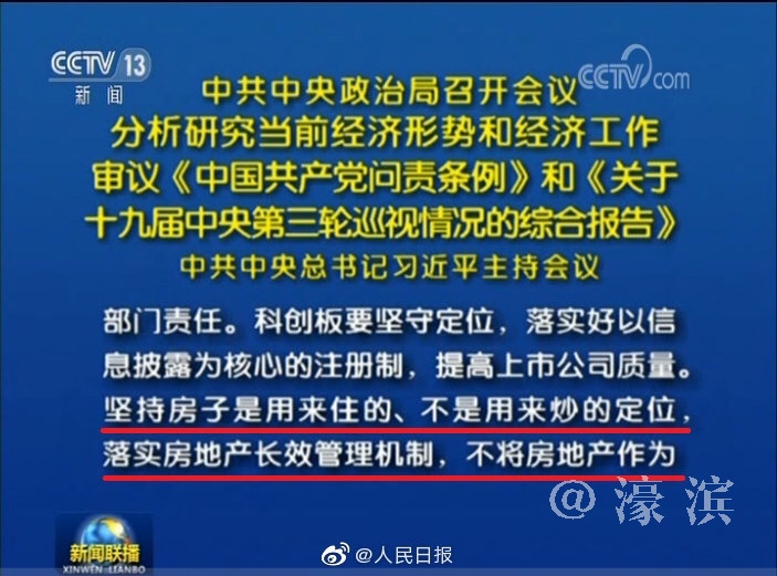 [随便港港] 中央政治局会议重申住房不炒 不将房地产作为短期刺激经济的手段 |