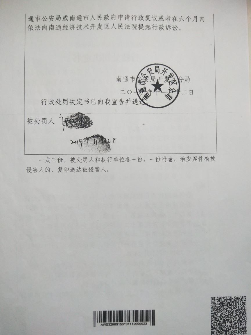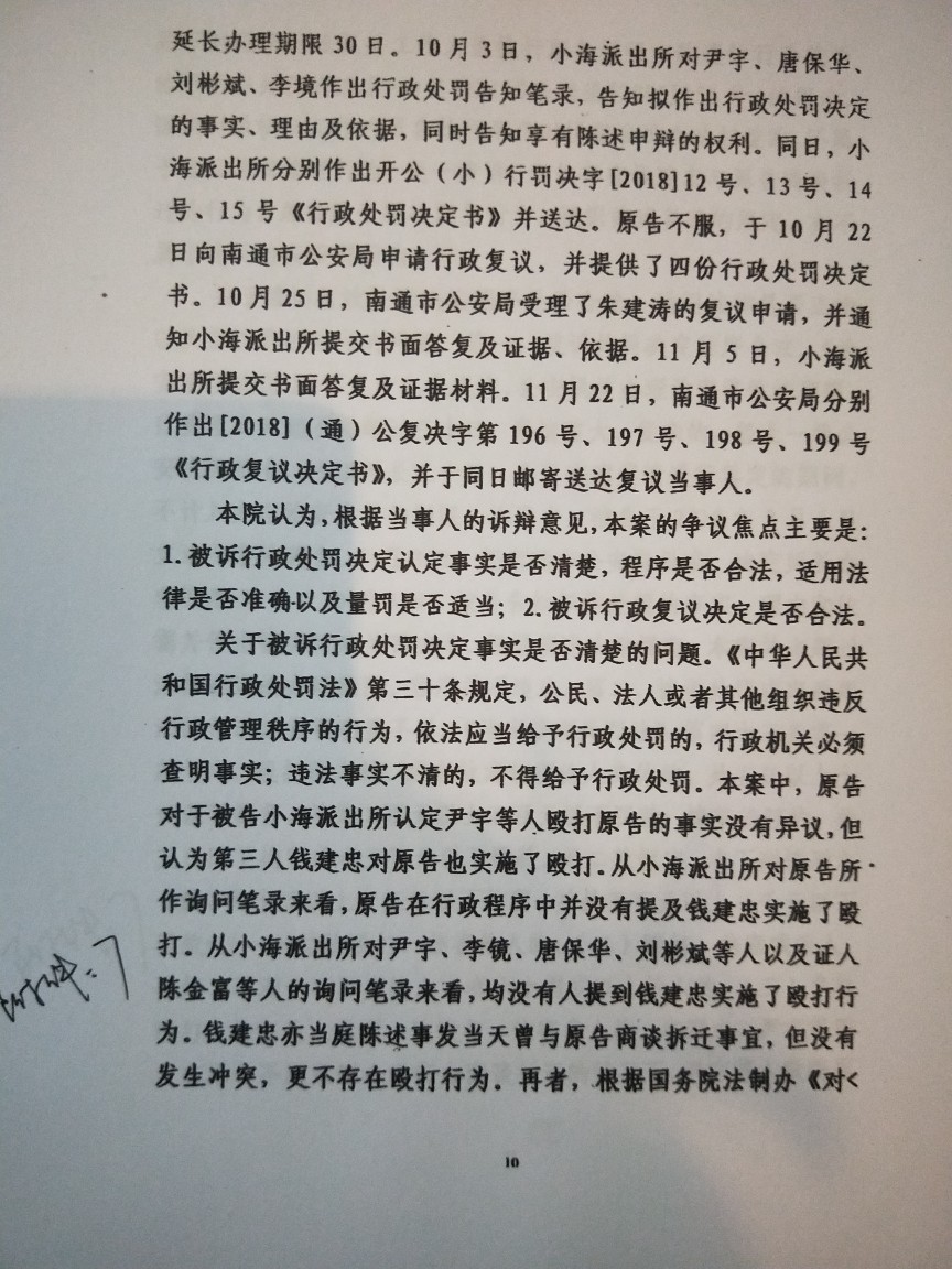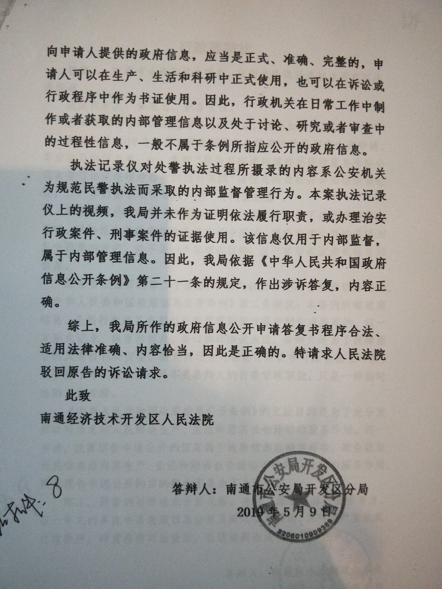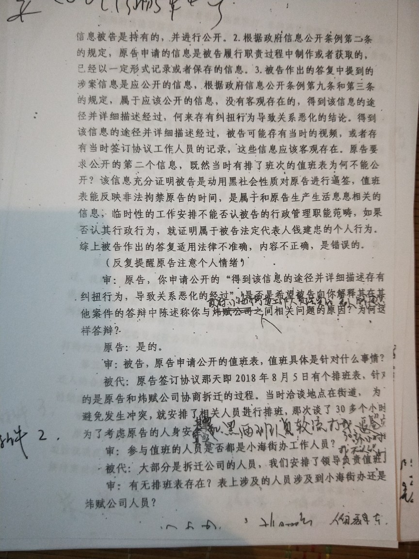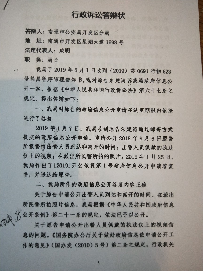 附件:1,小海街办2018年10月5日制作的《行政答辩状》 2,案号(2019)苏0691行初594号开庭笔录第三页 3,案号(2018)苏0691行初703号开庭笔录第十五页 4,案号(2018)苏0691行初703号笔录十四页 5,案号(2019)苏06行终172号《谈话笔录》 6,南通市公安局开发区分局2018年12月14日《行政诉讼答辩状》 7,案号(2018)苏0691行初703号《行政判决书》 8,南通市公安局开发区分局2019年5月9日制作的《行政答辩状》 9小海街办2019年5月9日制作的《行政答辩状》