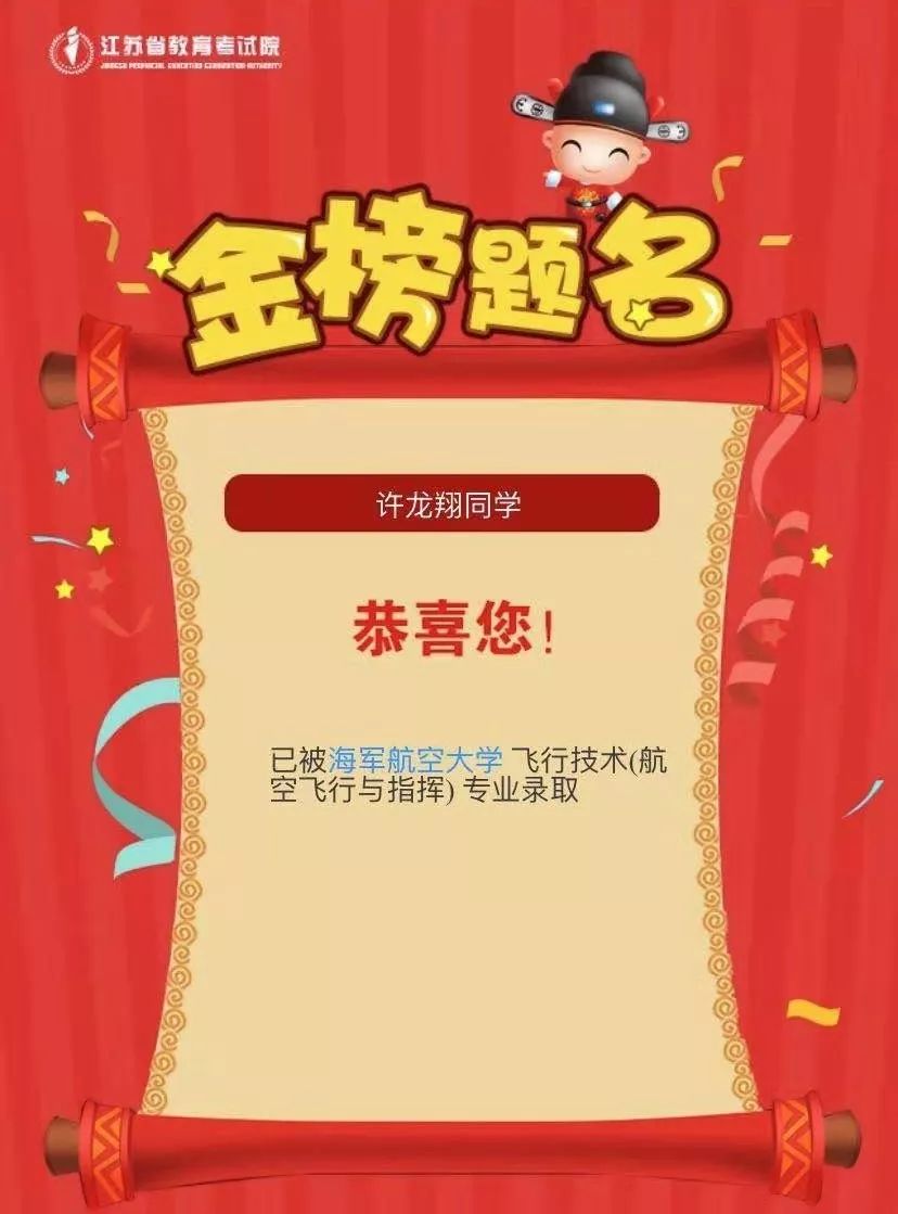 在八一建军节到来之际,海安市曲塘中学迎来高考录取喜报,高三13班许龙翔同学荣录海军航空大学,这也是曲塘中学8年以来被录取的第13名飞行员,这个连续“出飞”的优秀成绩在江苏省内也是独占鳌头。 近年来,曲塘中学始终坚持以学生的全面发展为目标,重视德智体等多方面的综合发展,大力开展阳光体育活动,积极组织各级各类文体活动,学生的综合素质、身体素质等均有显著提高。在南通市普通高中学生身体素质测试中名列第二名;在省市举办的体育社团比赛中也屡获大奖。这不仅丰富了学生的培养方式,更为他们的终生发展奠定了基础。 此外,作为“空军招飞优质生源地”,曲塘中学历来十分重视招飞工作,每年招飞开始时就广泛地宣传发动,高标准、严要求地进行选拔,加强对“苗子生”的全面培养,确保考生们能够梦想成真。从现已成长为空军一级飞行员、全军学习标兵的1998届毕业生吕劲松到获得北京大学、空军航空大学双学籍的2013届毕业生朱鹏,学校已连续多年培养出二十多名优秀的海空军飞行员。 附:2012年以来我校录取的海空军飞行员人数及荣誉 时间 | 录取人数 | 取得的荣誉 | 2012 | 2 | 招飞先进单位、先进个人 | 2013 | 3 | 招飞先进单位、先进个人 | 2014 | 1 | 优质生源基地、招飞先进单位、先进个人 | 2015 | 1 | 招飞先进单位、先进个人 | 2016 | 3 | 招飞先进单位、先进个人 | 2018 | 2 | 招飞先进单位、先进个人 | 2019 | 1 | 招飞先进单位、先进个人 |