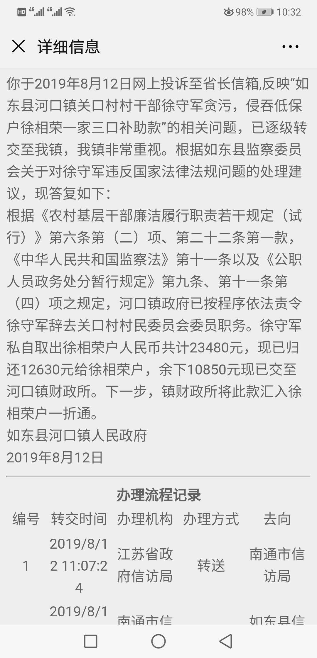 [百姓民声] 村干部非法冒领侵占低保户的政府补贴款2万余元 |