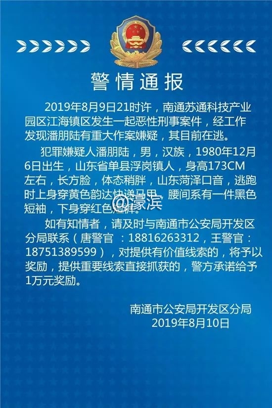 [新闻快讯] 刚刚,犯罪嫌疑人潘朋陆已被警方抓获 |