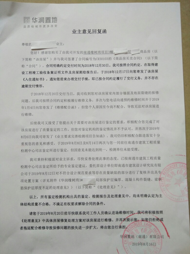 [百姓民声] 华润置业(南通)有限公司,你的社会担当呢? |