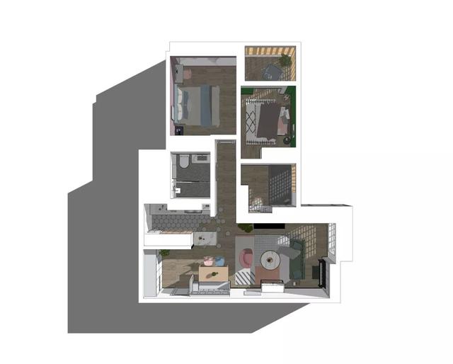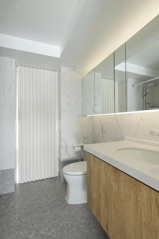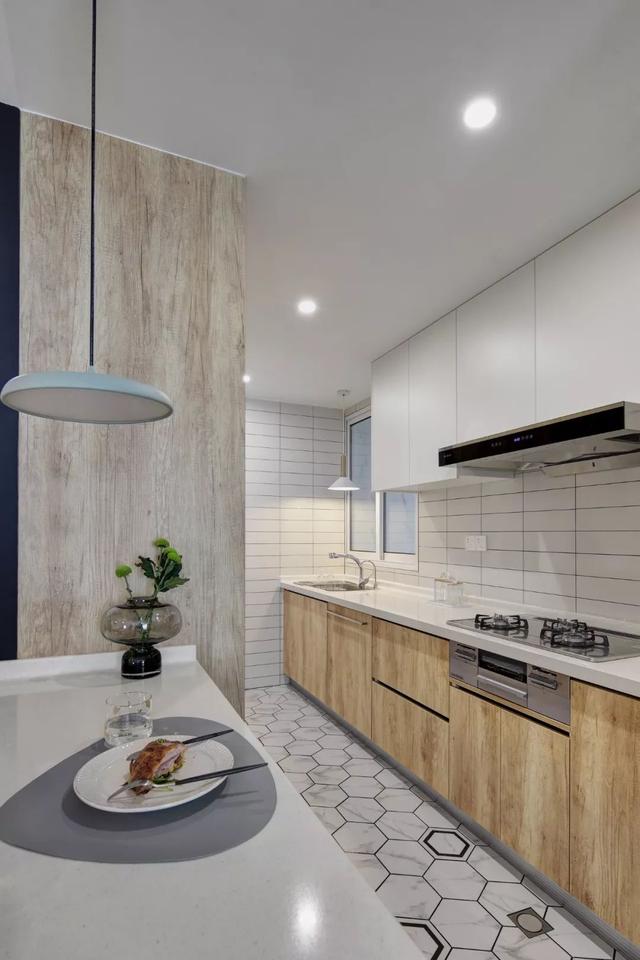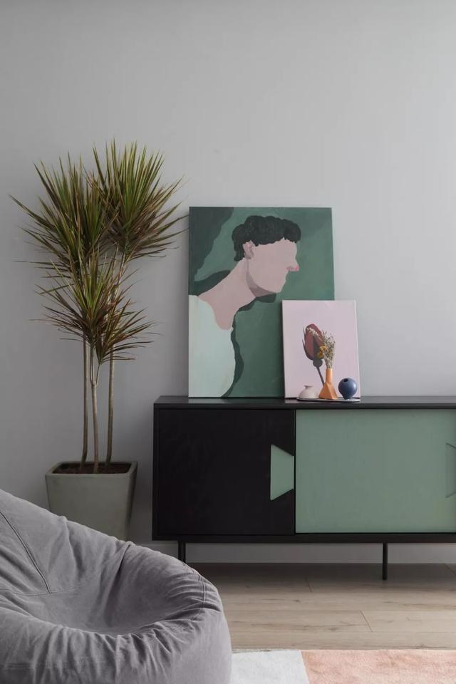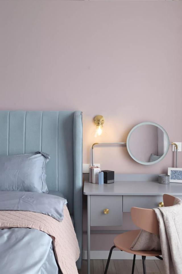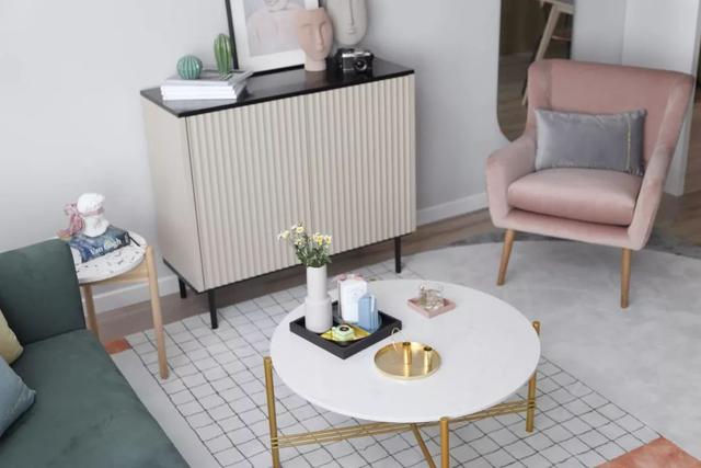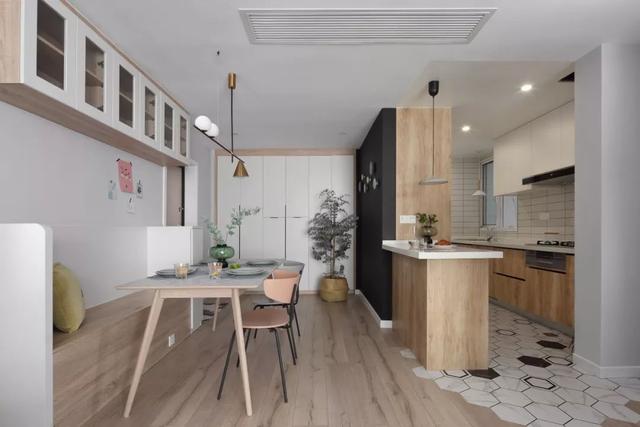 这套110平米的房子,在明亮舒适的采光下,在现代简约灰的硬装基础色调下,通过粉色等温情优雅的软装布置,点缀出一个充满自然与舒适质感的居住氛围感。 布置图 玄关 ▲玄关墙面刷成一面黑板墙,装饰上几个圆形小纽扣装饰,结合角落的一盆干树装饰,让回家的第一个画面显得充满文艺自然的气质感。 客厅 ▲客厅沙发后方留空出一定的位置,在飘窗旁边做了一个顶嘴的吊柜,下方的空位刚好摆上一台钢琴,使得客厅空间温情而又浪漫舒适。 ▲没有电视墙的概念,整体客厅以休闲聊天的功能为主,摆上简约优雅的家居布置,呈现出一个温情轻松的惬意气质。 ▲靠墙还有一个小斗柜,结合大理石质感的金属架茶几,摆上精致的软装细节,营造出一个华丽端庄的氛围感。 ▲黑+绿色的电视柜,柜面上的蓝色+粉色调的装饰画,结合旁边的一盆千年木,让空间显得充满清新的活力自然感。 餐厅 ▲餐厅以木色的卡座+吊柜,搭配上简约舒适的餐桌椅布置,呈现出一个娴雅轻松的用餐仪式感。 ▲餐桌上的花瓶与果盘、水杯,结合铜色的吊灯,呈现出一个轻奢自然的用餐氛围感。 ▲墙面的小贴纸,也在不经意间描绘出细腻轻松的气质。 厨房 ▲厨房地面铺设着雅白的六角砖,搭配白色长条墙砖,木色的橱柜,呈现出一个文艺轻松的烹饪空间感。 卧室 ▲卧室在粉色调的空间下,搭配灰蓝的软质布艺床,给人以浪漫闲适的轻松感。 ▲床头侧边的梳妆台,搭配圆镜与床头壁灯,也为主人提供了一个浪漫轻松的梳妆打扮小角落。 ▲另一侧的床头柜,摆上干花,垂下一盏白色吊灯,点缀出一个温情优雅的华丽感。 卫生间 ▲卫生间在灰色水磨石地砖基础,结合雅白的墙面砖,而洗手盆上方的镜柜延伸到马桶上方,并在吊柜上方暗藏了灯带,让空间显得温馨而又自然。 儿童房 ▲窗边摆了一套小休闲桌椅,打造成一个闲适雅致的小角落。 ▲墙面的这个仙人掌造型金属挂钩,也让空间显得格外的精致自然。 书房 ▲书房以定制榻榻米+书桌的组合,整体淡灰色的空间,搭配粉墨色座椅与摆饰,让空间显得文雅实用好舒适。 % _2 g0 g4 P, F" w" n l; L, P! {