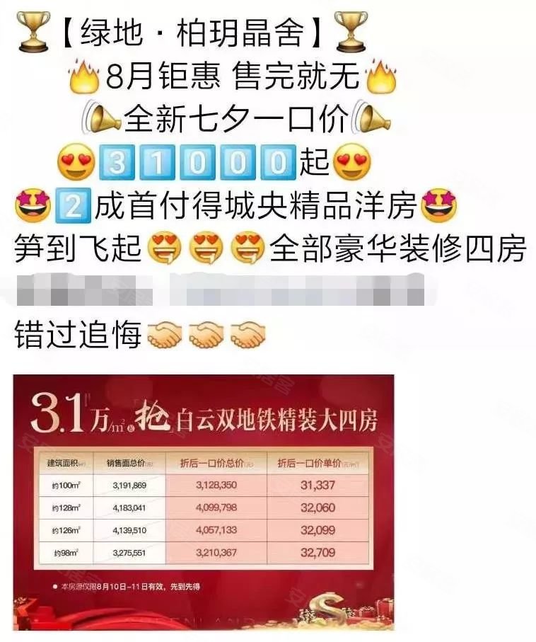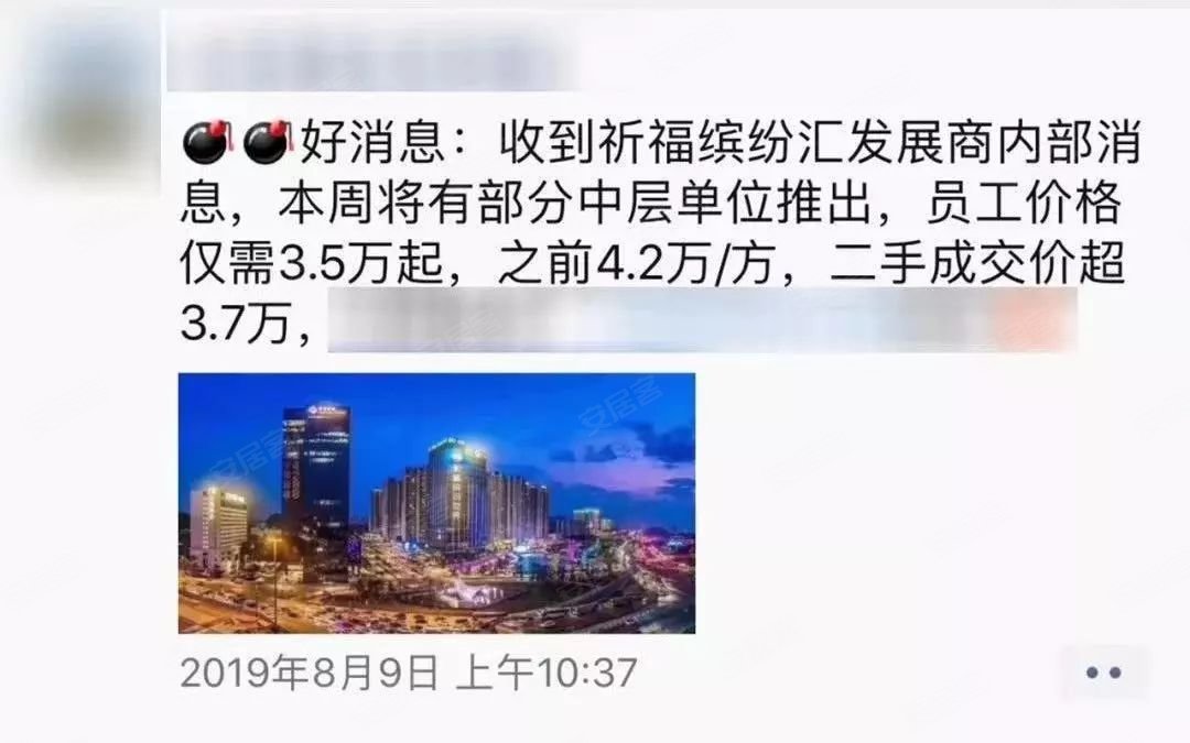 缤纷汇不是个例,比如说同在广州的XX国际,目前价格已经降到最低1.7万/平,而平时售价一直保持在1.9万以上。还有XX晶舍,近期推出的特价房低了近6千/平,跌幅超16%。