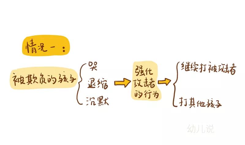有一个小男孩爱打人,每一次见到别人有玩具就冲过去抢,抢不赢就抓脸;有时小朋友蹲地上捡石子,他也冲过去推倒别人……其他小朋友每次见到他,都会故意躲开。这不,有个小女孩每次见到他都会大哭,还主动交出手中的玩具。小女孩的妈妈很沮丧地对我说:“经常鼓励孩子反抗,但孩子就是胆小,不敢。也不知道让孩子反抗是否对……” 经常有父母咨询小朋友行为的问题,例如有些孩子爱打人,屡教不改;例如有些孩子总被人打,父母们心疼纠结。 研究:孩子打人与被打的行为关系 心理学家Gerald Patterson与同事曾经做过一项研究,地点是在一所幼儿园。他们观察小朋友打人与被打之间的行为关系。在详细记录了相关数据后,发现了下面的一些规律: 1、被欺负的孩子:哭/退缩/沉默,会有什么后果? 如果孩子被打时,不进行反击,而是表现出三种情况中的任何一种或多种:哭泣、逃跑退缩,或沉默,那么就相当于打人者的行为被强化。被欺负孩子的“软弱”助长了打人者的暴力行为,这些打人的孩子或许会继续欺负“软弱”的孩子,或以相似的方式打其他孩子。 可以说,孩子被打了,不反击就是鼓励欺负。 2、被欺负的孩子反击,或大人阻止欺负行为,会有什么后果? 如果孩子被打之后立即反击,或者现场的大人、老师阻止了打人的孩子,攻击他人的孩子的打人行为会得到收敛,或寻找其他攻击对象,有些孩子甚至因此改掉了打人的行为。 而对于那些通过反抗而遏制了攻击者的打人行为后,曾经的这些被攻击者可能会变成攻击者,因为他们的反抗获得了积极的效果,部分孩子也可能因此尝到了甜头而学会了攻击他人。 身边有个小朋友正是这样的典型例子。一开始,他带玩具在小区的花园玩耍,总会被一个小男孩欺负,被推打、被抢玩具。孩子的爸爸很恼,便频繁鼓励他“打回去,不打回去就不是我儿子”。有一次,他的玩具又被抢,他突然鼓起勇气,在大吼中推了对方一把。欺负人的孩子吓坏了,丢下玩具就跑。慢慢地,这个曾经被人欺负的孩子出现了喜欢推倒他人的行为。 攻击者父母的态度:如何让孩子改掉打别人的行为? 正如上面提到的,如果欺负人的孩子被对方反抗,或被大人及时阻止批评,在一定程度上能改变攻击者的行为,但有时也不一定,因为孩子打人、欺负人的行为背后,常常是同理心的缺失。 那么父母们该如何教育爱打人的孩子? 可以采取反省与同理心引导的做法。小朋友越小,是越不懂自我反省的,这时“隔离区”就是一种形式,帮助孩子知道,每一次妈妈让Ta站在隔离区,就意味着自己犯了错误。隔离时间一般是孩子对应年龄的分钟数,例如孩子3岁就“隔离”三分钟,以此类推,与此同时,鼓励孩子思考自己的错误。 隔离时间结束时,父母就询问孩子的反省情况。接着,同理心引导。例如妈妈可以问:“你打了小乐,小乐哭了,你说说,他为什么哭?”“假如被打的是你,怎么办?小乐打了你的脸,你会不会觉得很疼……”引导孩子换位思考,理解别人的感受。《时代周刊》曾经有研究指出,早期的同理心培养,能帮助孩子改掉欺负他人的行为,同理心也能帮助孩子未来收获良好的社会人际关系。 被攻击者父母的态度:我不想孩子被欺负,又不想他们学会暴力,怎么办? 下面是一些父母的做法,看看哪一种更适合你? 做法1:让孩子看起来不好惹 北美有一位小女孩名叫MilLa,她在学校经常被欺负,父母鼓励她锻炼身体,进行极限挑战,一段时间后,小女孩不仅变得身体强壮,还很自信。那些曾经欺负过她的孩子都不敢再欺负她了。 但情况不总是这样的。有一位日本的小男孩佐藤在学习了武术后,虽然学得不错,但在欺负他的孩子面前,他还是采取了退缩的态度。 所以,这种做法有些孩子可行,有些孩子不可行,但父母们可以让孩子先试试,如果无效就寻找别的解决方法。 做法2:人不犯我,我不犯人 可以通过“人不犯我,我不犯人”的做法,别人打我,我就反抗或打回去;当别人没欺负我,我也能当个好孩子。当父母知道孩子被欺负后,还可以通过游戏模拟的做法,让孩子演练被欺负时该如何应对。这种做法已经被不少家庭采用,也帮助了不少被欺负的孩子保护了自己,又没学会暴力。 例如当孩子被打了,爸爸或妈妈可以扮演欺负人的那个孩子,在孩子的头发被人抓住的场景中,这时孩子可以大喊“老师”,找老师帮忙;如果身边没有大人,那么就只能孩子自我解决了。当孩子的头发被抓时,可以双手抓住对方位于自己头上的手,然后做卷臂的动作,对方疼痛就会迅速放手,继而视情况是否要反击。 小朋友欺负人的手法很多,父母们可以在演练中帮孩子找到合适的反抗做法。原则是既保护了自己,又不伤害到他人。 无论孩子打人,还是孩子被打,父母都要重视和适当介入 如果2,3岁的宝宝打人,我们常常可以归因于他们不懂正确的表达方式。如果孩子到5,6岁了还喜欢打人,那么就是幼儿行为和教育方面的问题了。挪威心理学家Dan Olweus有研究发现,6岁左右有频繁攻击他人习惯的孩子,成年后容易有打架或争斗行为,未来也趋向于有更多的家庭暴力。 相比之下,被频繁欺负的孩子也趋向于有行为问题,《儿科学》发现,仅观察5岁的孩子,与没被欺负的孩子相比,那些经常被欺负的孩子的行为问题更多。被欺负的孩子,常常承受了很大的心理压力,他们委屈、害怕、愤怒,但常常不懂反抗或反抗不了。所以,父母们平时多