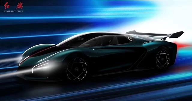 对于国人来说,尤其是见证了新中国汽车发展的人们来说,红旗品牌成为了他们的骄傲,但在很长一段时间里,红旗在市场上的表现却让他们骄傲不起来。 不过,徐留平调任一汽,给红旗制定的系统性品牌战略后,全新H5(参数|图片)的上市让它再度和市场接轨,让外界对“共和国长子”的未来多少增加了新的期待。 而红旗E·境GT概念车的发布,又展现出了红旗全新的姿态。 该车是一款GT轿跑风格的概念车,采用了红旗最新的家族式设计语言,较大的直瀑式中网进气格栅与两侧犀利动感的矩阵式头灯完美结合,配合引擎盖上凹凸有致的筋线以及红旗车标营造出一种蓄势待发的视觉冲击力。 同时这辆红旗E境 GT(参数|图片)概念车(参数|图片)也展示了红旗品牌的最新设计风格和设计水准,而就在这辆红旗E·境GT还没有量产的时候,红旗打造的又一辆全新超级跑车概念车曝光,据悉,新车即将在明天开幕的法兰克福车展亮相。 目前关于该车的信息仅有三张预告渲染图,我们能够看出,新车的线条极具流线感,其中前大灯组采用全LED光源勾勒,同时我们够从车头看出巨大的空气动力学设计,这或将为新车带来不错的空气动力学效果。 机盖上的长条形红色立标一直延伸到了前风挡下侧,还是彰显了品牌的基因。 侧面来看,新车侧面腰线设计非常流畅,整体采用中后置超级跑车的布局设计,全新的轮圈造型看起来格外独特。尾部夸张的尾灯组采用T字造型,搭配大尺寸固定式扰流板,进一步突出了其超级跑车的定位。 值得注意的是,新车在轮圈和车侧C柱上出现了全新的LOGO,类似于三叉戟的形状,这在红旗品牌上是首次出现,暂时还不清楚其LOGO的具体含义。这款纯电动超跑将在一天后正式揭晓其身份之谜,敬请期待。 从目前看到的外观信息来看,这是一辆在视觉效果上媲美法拉利,兰博基尼这个级别车型的超级跑车形象。