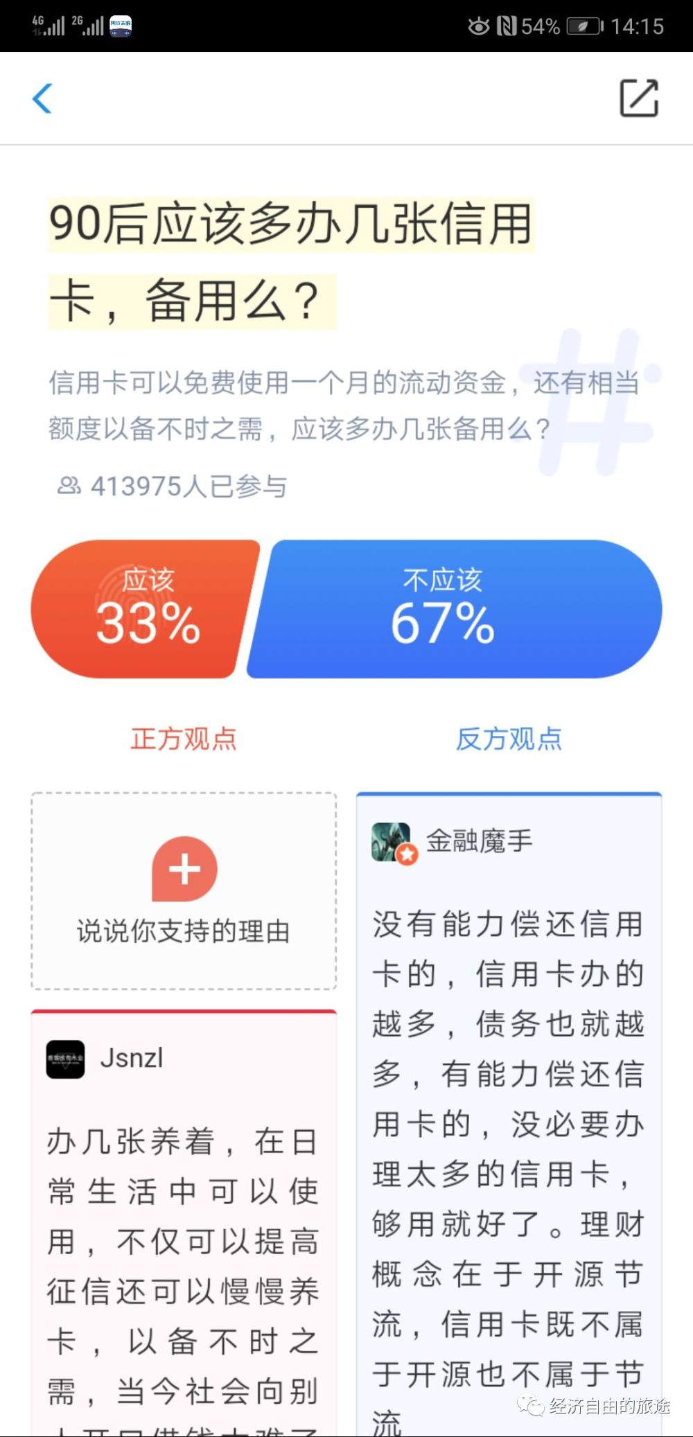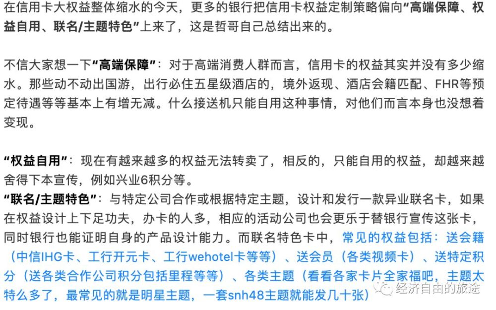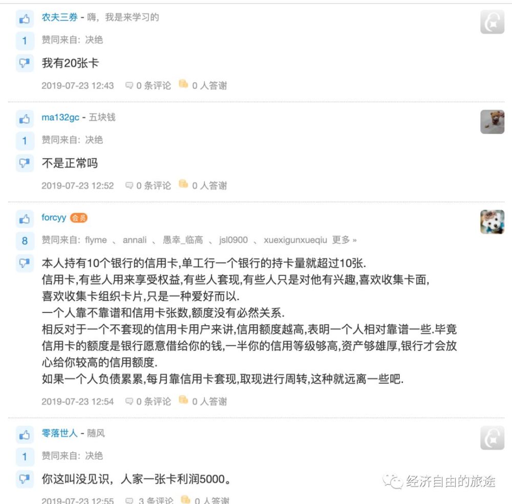 中秋三天假期,大家又月半了多少? 趁着这几天卡圈没啥大新闻,跟大家聊些轻松点的话题。 你认为信用卡时代是否已成“过去式”了吗? 诚然,大陆的信用卡从1986年中国银行长城信用卡发布到现在,已经有33年历史了。 这33年来,信用卡业务可谓遍地开花。大家从对信用卡的态度也有了戏剧性的变化:从陌生到排斥到接纳再到今天人手几张,权益和攻略研究到飞起。 卡圈写文久了,经常跟一些人交流。发现一个观点:从这几年的信用卡年报可以看出,信用卡发卡量已经很巨大了,市场上新用户也越来越少了,尤其在微信支付宝崛起的今天,中国信用卡的未来也未必像欧美市场那么坚挺。 信用卡历年的半年报也跟大家分享过很多次,这次不从死板的官方数据去谈。 手机里前阵子存着几张图,给大家发一下: 1、我在飞客做的几个投票 你的总行数是多少 做调查之前估算了一下7-10行应该是茶馆平均水平。结果果不其然。 顺便也统计了下目前的总授信,不过这个投票后面删掉了。 统计的大部分人群,单一总授信(只算自己的,不算爱人或其他人的)普遍在50万左右。 人均7-10行、总授信50万左右,就是卡圈专业玩卡人士的平均水平。 达不到这个标准的,不要整体担心卡太多会怎样云云的。 再说这个标准翻个一倍,也不代表什么,关键看你怎么用卡。 2、我们再看另一张图 这张图是我经常喜欢上的社区-集思录的一个热门问答。 集思录算是国内低风险收益分享社区吧,主力人群以70后、80后为主。作为理财垂直社区。 如果说飞客上更多的人是利用信用卡享受权益,获取生活优惠的话; 集思录的人则更多的是利用信用卡资金的属性,理财赚钱或生意周转。 看似信用卡这个圈子的东西,已经被大家所熟知了。 但当我们把视线从卡圈这个小圈子转移出来,投入到大众视线里。 结果则完全不一样。 3、这张图应该是7月还是8月,支付宝做的一个调查。 调查人群是90后,截图时候的投票人数已经有41万人了。 调查结果有点略微出乎我的意料 90后,即年龄在20-29岁的年轻人。而00后还太小,基本接触不到太多的信用卡业务。90后可以说是最能代表年轻用户趋势的了,这批最能接纳新鲜事物的人群,没想到对信用卡的态度还这么“古板”。 这也是为什么近年来不少银行的高端卡开始针对青年人下放或直接推出青春版,最出名的就是交行YE卡。 支持的声音里,大多数的观点跟卡圈一致,信用卡的种种好处罗列一堆。 反对者的声音里,大多数的观点不是因为通晓之后的选择,而纯粹是因为不懂的排斥。 对一件事物价值观已经建立的人,“毁三观,建新生”的难度是很大的。 而因为不懂而排斥某件事物的人,知识普及和经历会很容易的改变他。 那些“信用卡没法开源也没法截流”在观点,也会因为知识之光的照耀,烟消云散。 所以,信用卡不是到了“末期”了,而是信用卡针对目前的客户群结构,要“转型”、要“革新”,因此才出现了大量“温暖升级”。 记住这张橄榄球图,知道银行的成本重心和利润重心。 也记住我之前提到的信用卡今后的趋势,这个趋势只会越来越明显。
