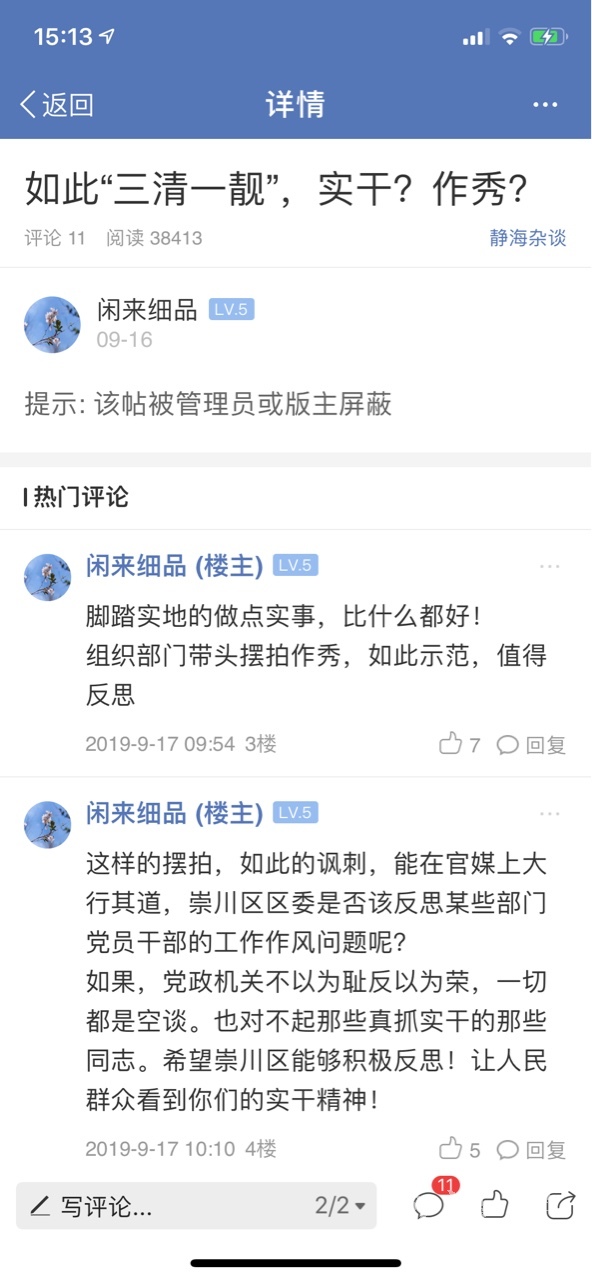 [网友评论] “三清一靓”爆作秀,崇川部门删帖忙—— 做贼心虚 |