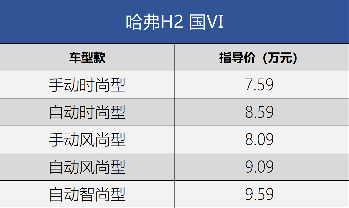 售7.59-9.59万元 哈弗H2国Ⅵ版上市 |
