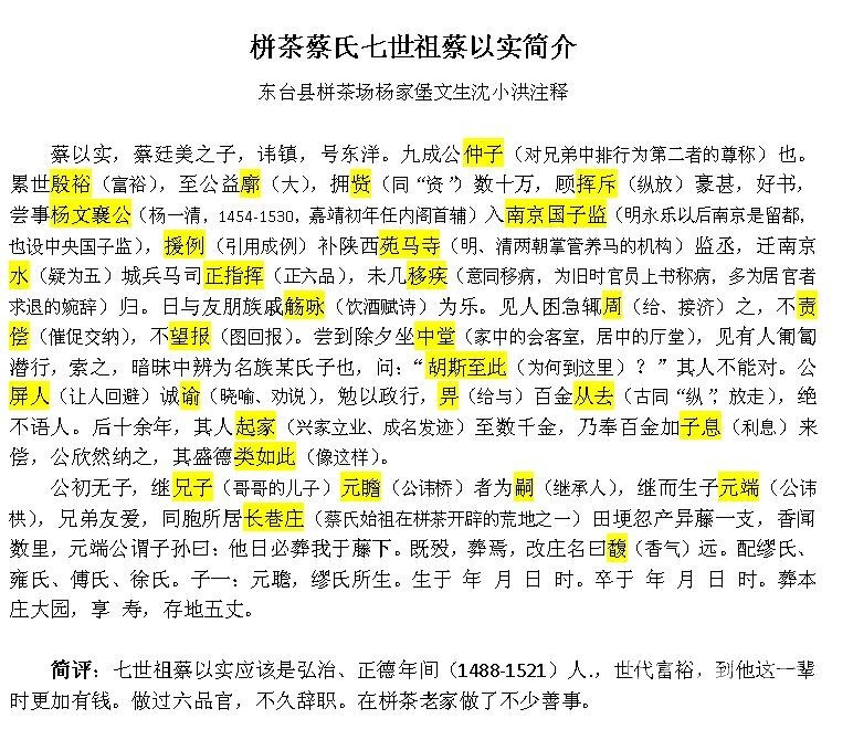 栟茶蔡氏七世祖蔡以实简介 |