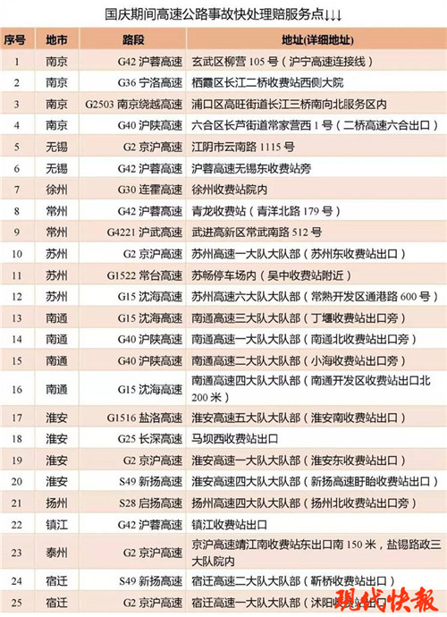 国庆期间,外出游玩增多,亲友聚会频繁,返程期间出现疲劳驾驶、酒后驾驶风险增大。同时车流、客流量上升,高速公路违反占用应急车道、车辆超员载客等交通违法行为可能多发。交警部门提醒:酒后驾驶、疲劳驾驶、违法占用应急车道、超员超速行驶,不仅是严重交通违法行为,更是引发交通事故的诱因,一旦遇有紧急情况,易导致交通事故,请广大驾驶人安全文明出行,遇有车多缓行等情况时,服从现场交警指挥。同时再次提醒,10月6日、7日,南京二桥、江阴大桥、苏通大桥、崇启大桥将继续实施部分货车限时错峰出行政策。其中危险化学品运输车全路网、全时段限行,黄牌货车每日6时至20时限行。 返程提醒三 轻微事故快处快撤现场逗留要不得