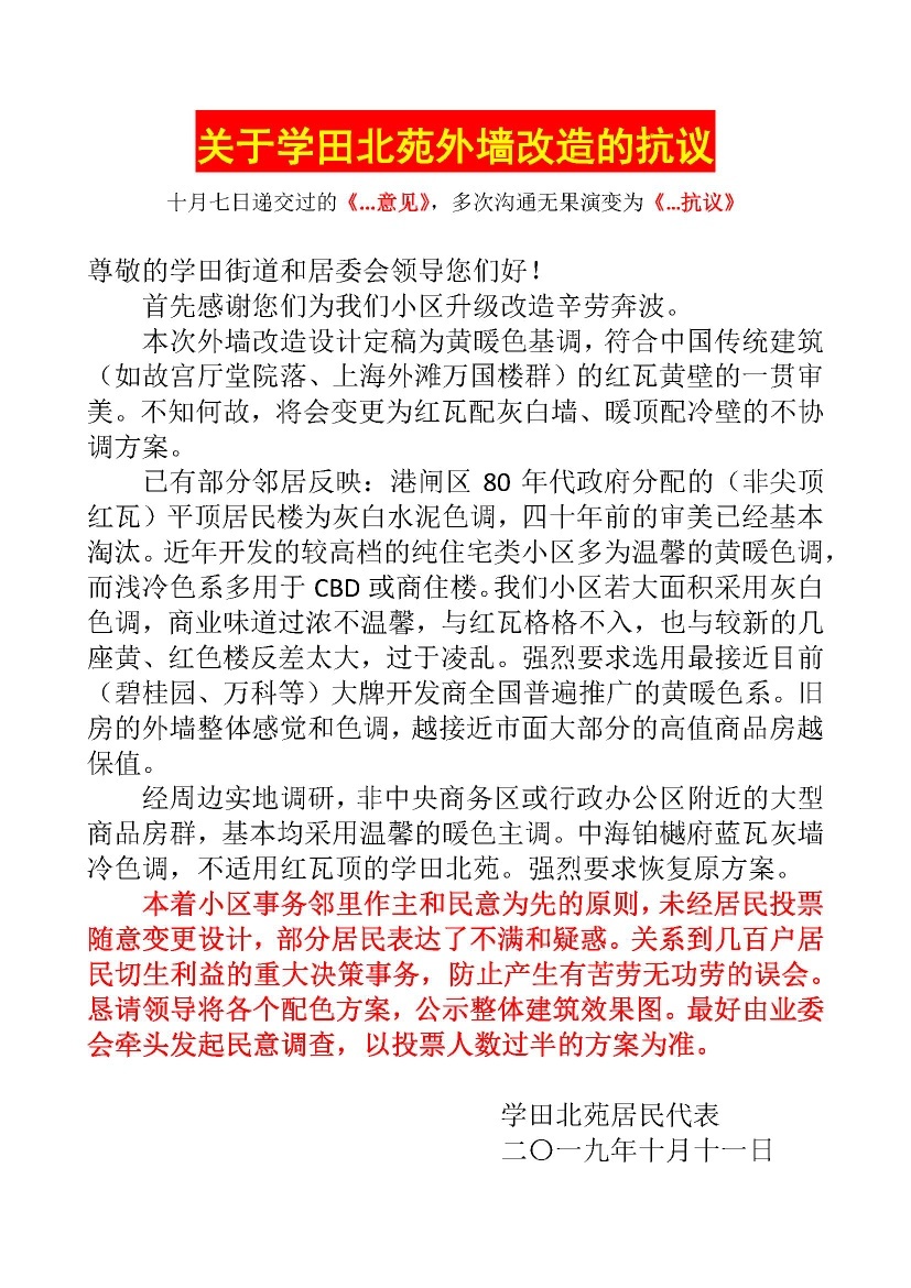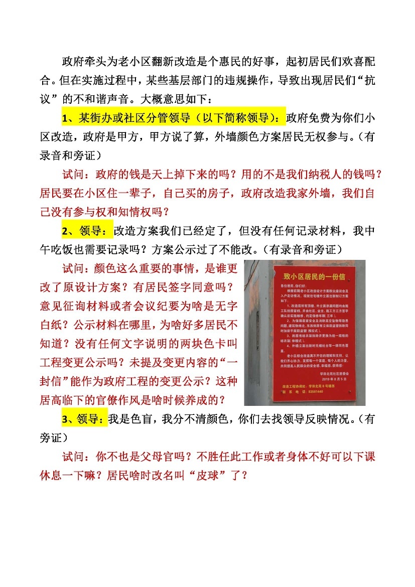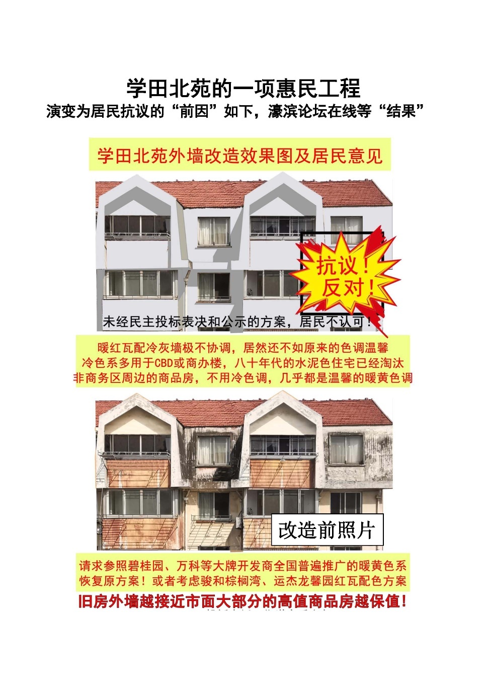 [百姓民声] 学田北苑改造工程喜事变抗议。脱离民意的惠民工程能真正惠民吗? |