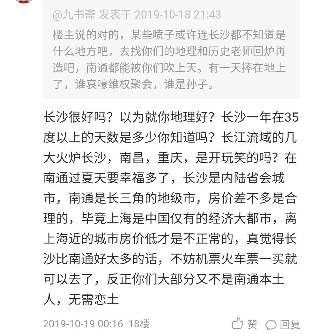 [随便港港] 无知者无畏呀!南通比长沙好?你们是炒房炒疯了吧。 |