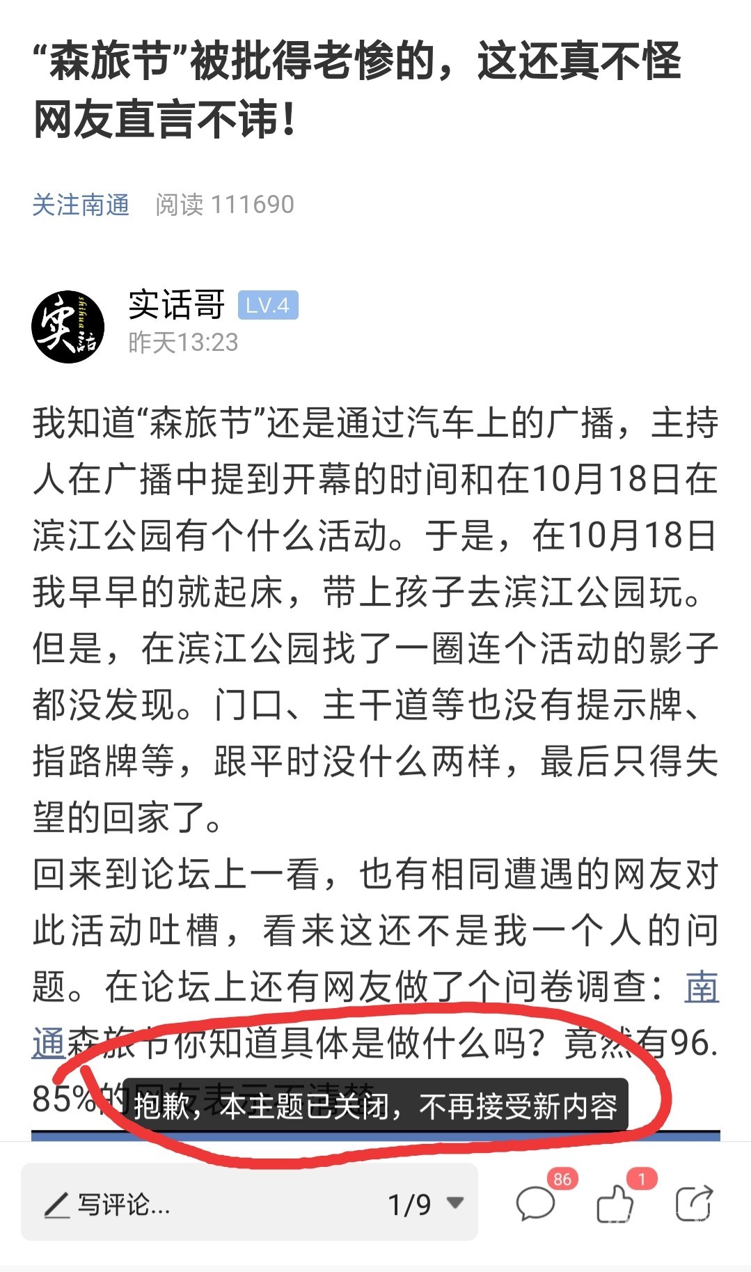 [焦点爆料] 反映“森旅节”被广大网友吐槽的帖子被限制评论 |
