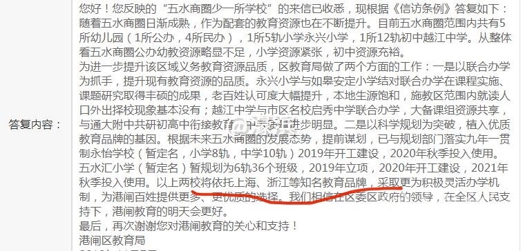 [焦点爆料] 五水汇小学明年开工,依托上海和浙江教育品牌资源,造福一方百姓! |