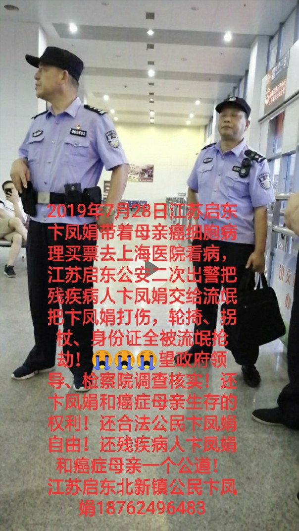 [新闻快讯] 江苏启东北新镇长、村书记不准残疾人和癌症母亲去上海医院看病 |
