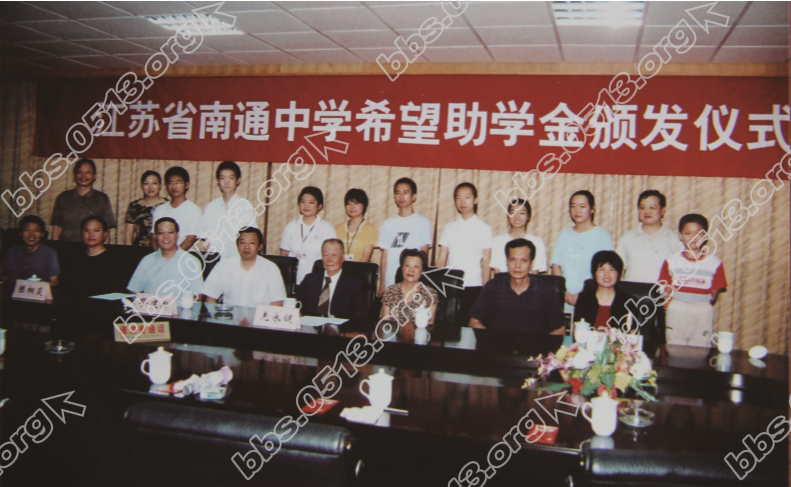 此举得到其子女的支持。经协商,最终确定分别在南通中学与通州高中设立“清寒奖学金”,资助清寒子弟(后经校方建议,改名为“希望助学基金”),奖金分十年,分批发放。