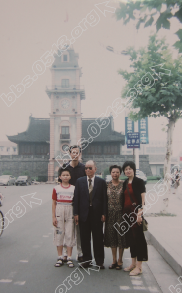 2001年初夏,羌永健、章金桂夫妇(前排左二三)首次回通,张德友(后排左二,时为崇川区统战部部长)、王宗言(后排左五)、 王师良(后排左一)、陈汉义(后排左六)等人陪同