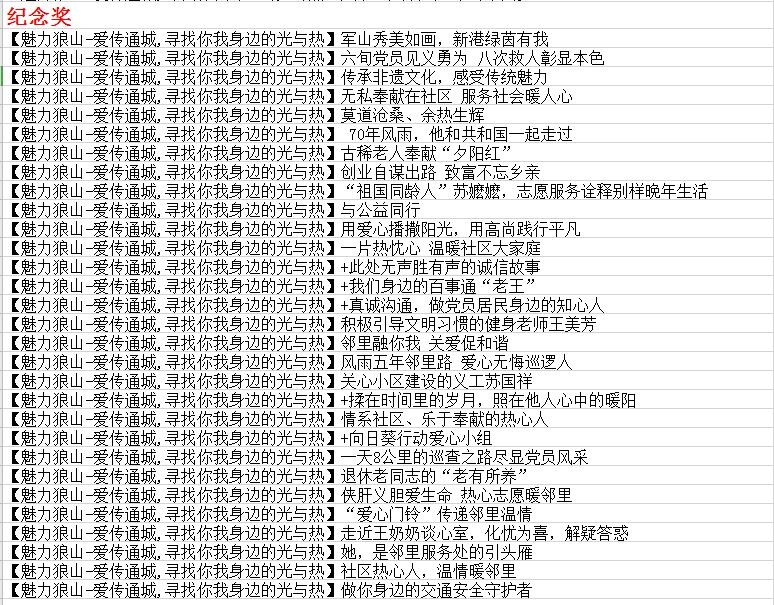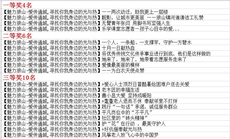 狼山镇街道 “爱传通城,寻找你我身边的光与热” 网络文化活动获奖名单