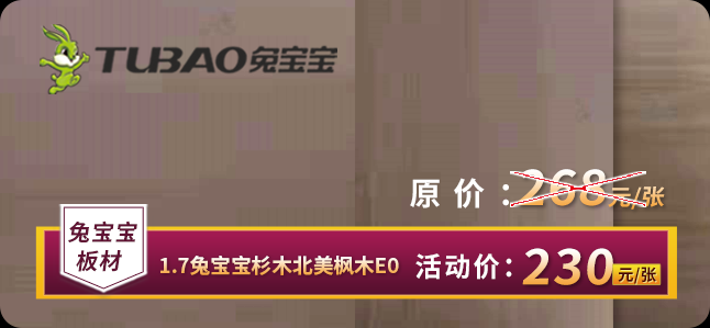 全屋定制使用兔宝宝定制款板材 环保又安心 遇到活动价,必抢不手软!