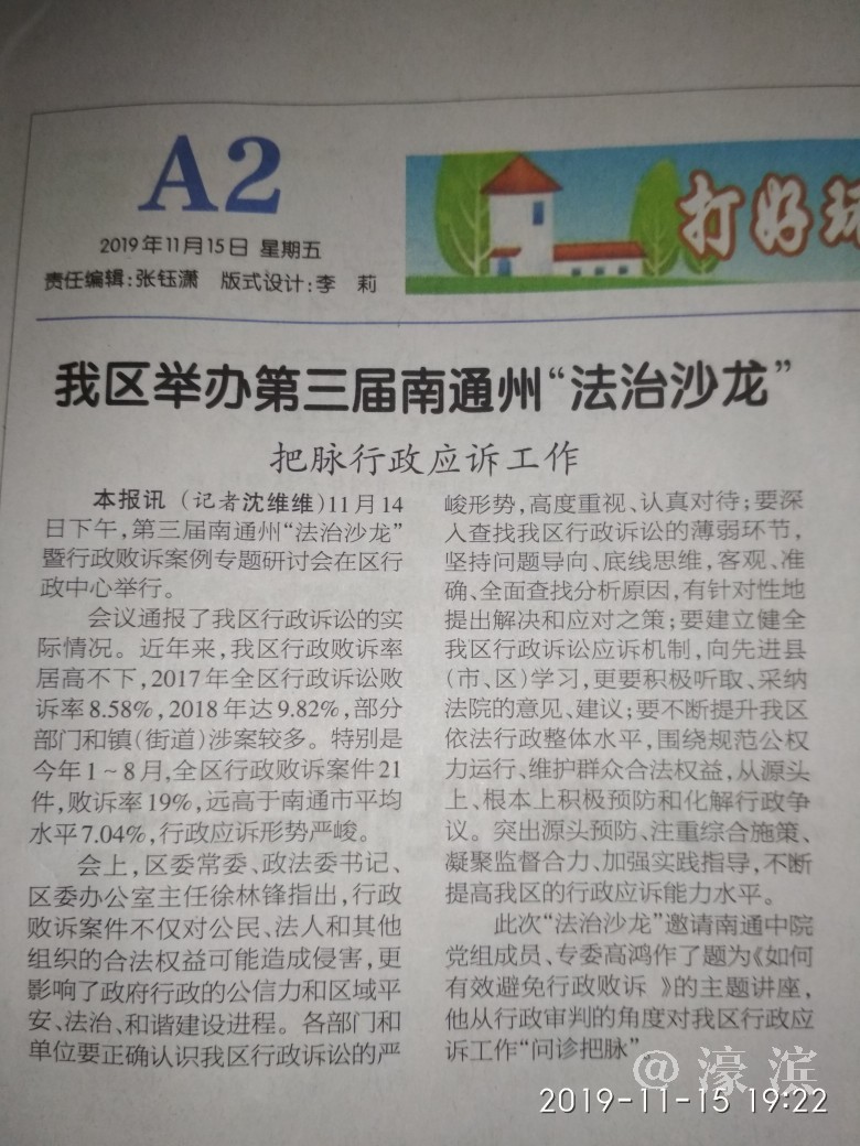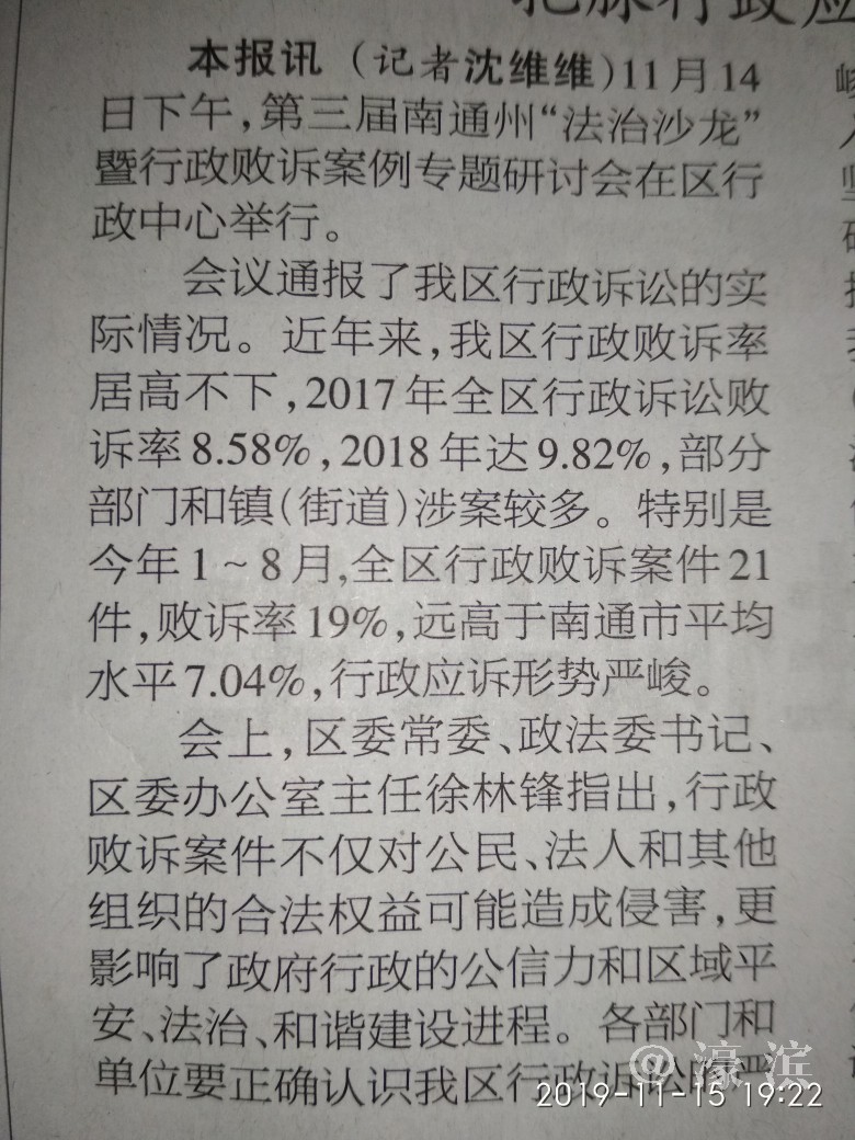 [焦点爆料] 南通市通州区今年行政应诉形势严峻 |