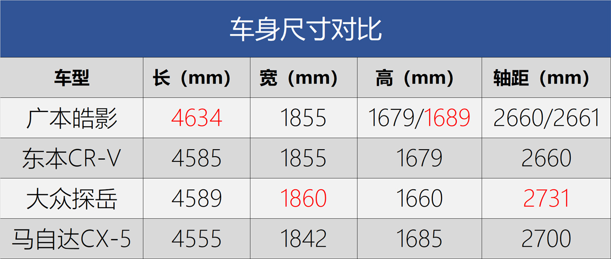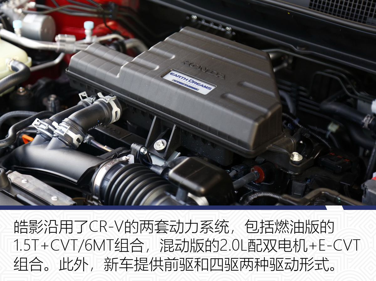 配置上,全新皓影中高配车型带有全景天窗、HUD抬头显示系统、倒车雷达、胎压监测、360度全景影像系统、定速巡航、手机无线充电、自动大灯等。 智能网联部分,皓影搭载第二代Honda CONNECT智导互联系统,具备语音控制、在线音乐、高德地图导航等功能,菜单逻辑很简单,上手零难度,反应速度不算特别快,满足日用问题不大。 乘坐感受上,全新皓影座椅的人机工程学较为出色,座椅对身体贴合性很好,填充物软硬控制的也很好,175cm身高的用户坐进车内还是能享受到宽敞的乘坐空间。储物空间自然也是本田的强项,不仅车内空间利用率高,后备厢的地台平整度和高度都比较适合中国消费者的身材。 动力部分,全新皓影分为燃油版车型和混动版车型,其中燃油版车型搭载1.5T直列四缸发动机,最大功率为193马力,峰值扭矩为243牛·米,传动系统匹配6速手动和CVT无级变速箱,并提供前驱和四驱车型;全新皓影的混动版车型则采用2.0L i-MMD混动系统,其由2.0L阿特金森循环自然吸气发动机与双电机组成,综合最大功率215马力。 竞争对手,全新皓影作为东风本田CR-V的姊妹车型,预计售价上与CR-V非常接近,但是皓影定位相比CR-V更加年轻,受众人群面对85、90后更多,所以竞争对手不乏丰田 RAV4荣放(参数|图片)、马自达CX-5、大众途岳、雷诺科雷傲等车型,但是综合销量来看,恐怕直接对手应该是丰田RAV4荣放和大众途岳。 总结:本田玩儿双车战略也不是第一次了,消费者对这种做法也是司空见惯。原本是想着1+1>2,但是从销量角度来看,本田在各级别车型中的双车战略收益并不可观,思域和凌派、缤智和XR-V算是成功案例,但是大部分车型都没能达到预期。抛开市场需求量这个重要因素,产品的差异化是影响双车战略的主要因素,我想说的是皓影和CR-V太过同质化,即便在广汽本田设计师的调教下,加入了年轻的味道,但是愿意消费这款车的年轻人又是少数。要想真正做到1+1>2或许有点难度,但1+1=1.5还是有可能的。