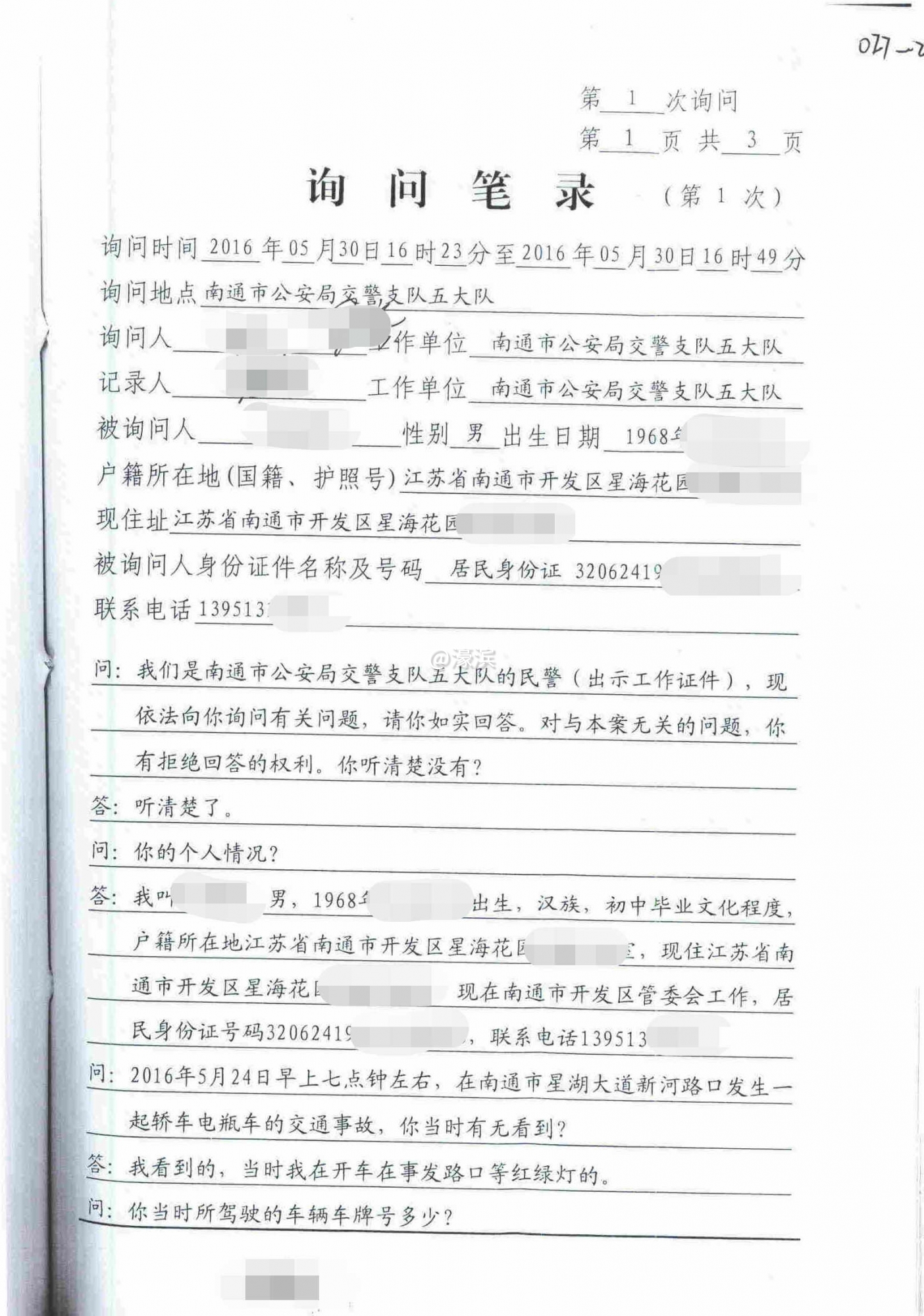 [焦点爆料] 南通市市公安局警察家属超标电动车闯红灯,疏通关系,枉法结论! |