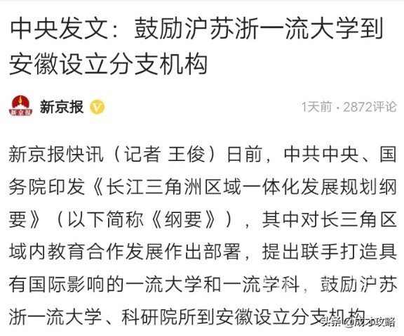 [随便港港] 国家政策鼓励江浙沪一流大学来安徽办分校 |