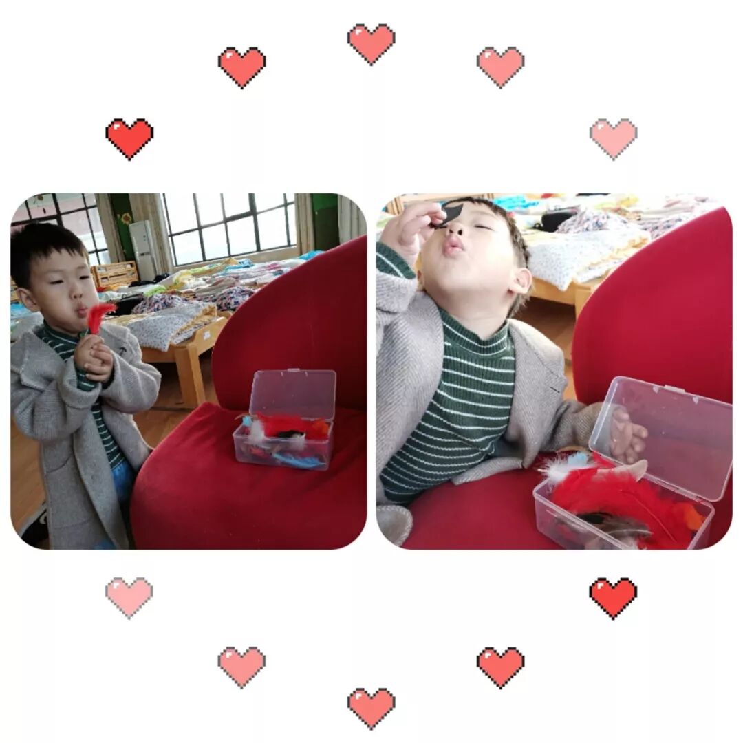 班上有很多大大小小、颜色各异的羽毛,它们躺在精美的小盒子里,透过玻璃看外面的世界。直到有一天,一个小男孩欣喜地发现了这些漂亮的羽毛,打开了这个神奇的盒子。小男孩看着这些羽毛,惊呼:哇,好漂亮啊! 于是,男孩开始观察、摆弄……